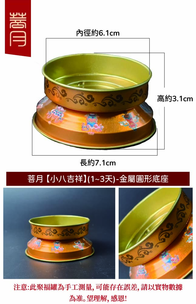 home 首頁 navigate_next 產品專區 navigate_next (B)菩月系列 navigate_next (B-3)燈架 navigate_next 菩月 八吉祥金屬圓形底座