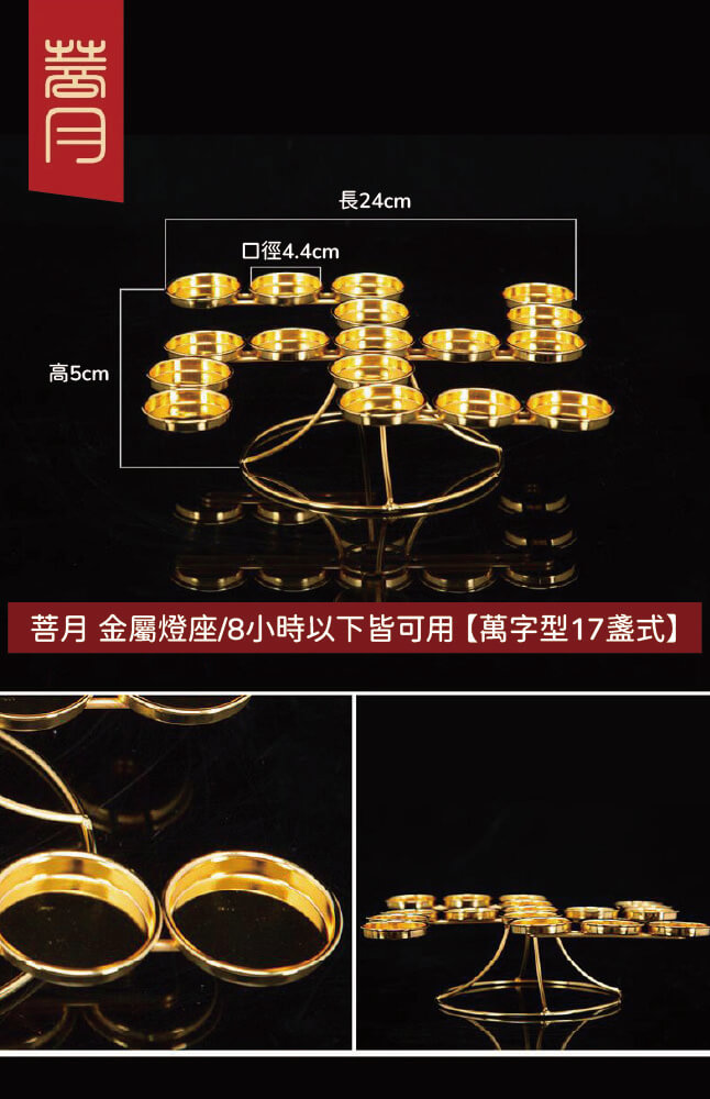 home 首頁 navigate_next 產品專區 navigate_next (B)菩月系列 navigate_next (B-3)燈架 navigate_next 金屬燈座 (萬字型17盞式)