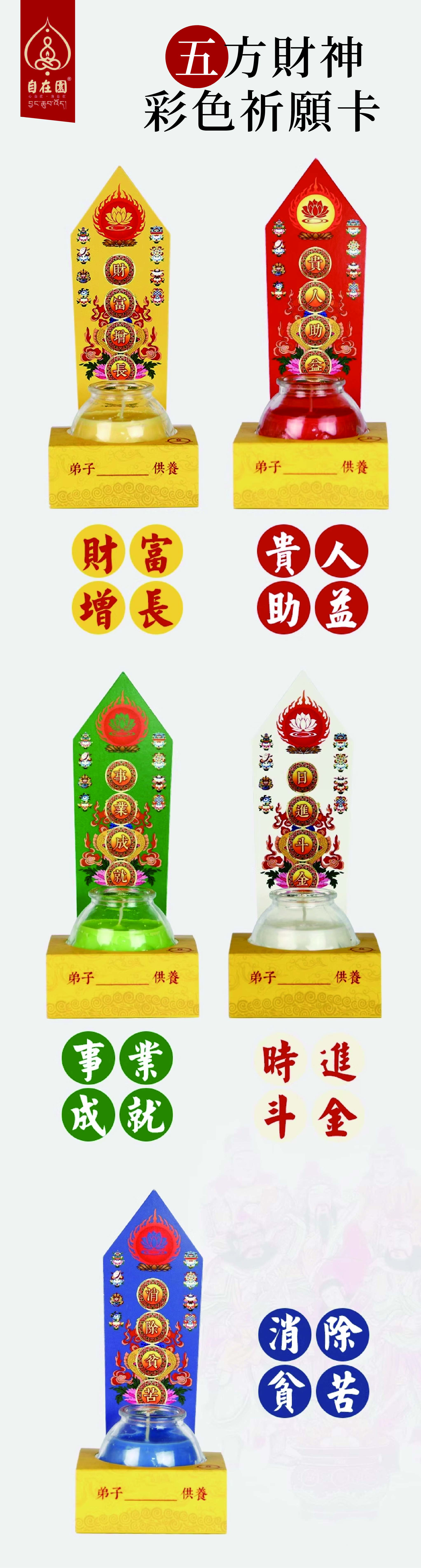 自在園 蓮花聚福罐【五方財神-彩色祈願卡】