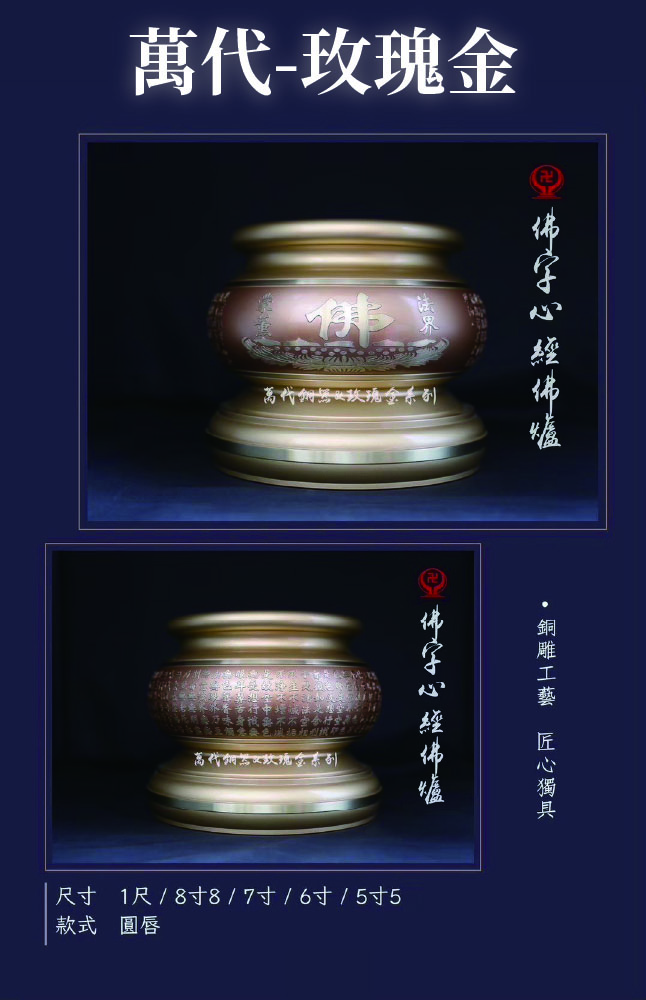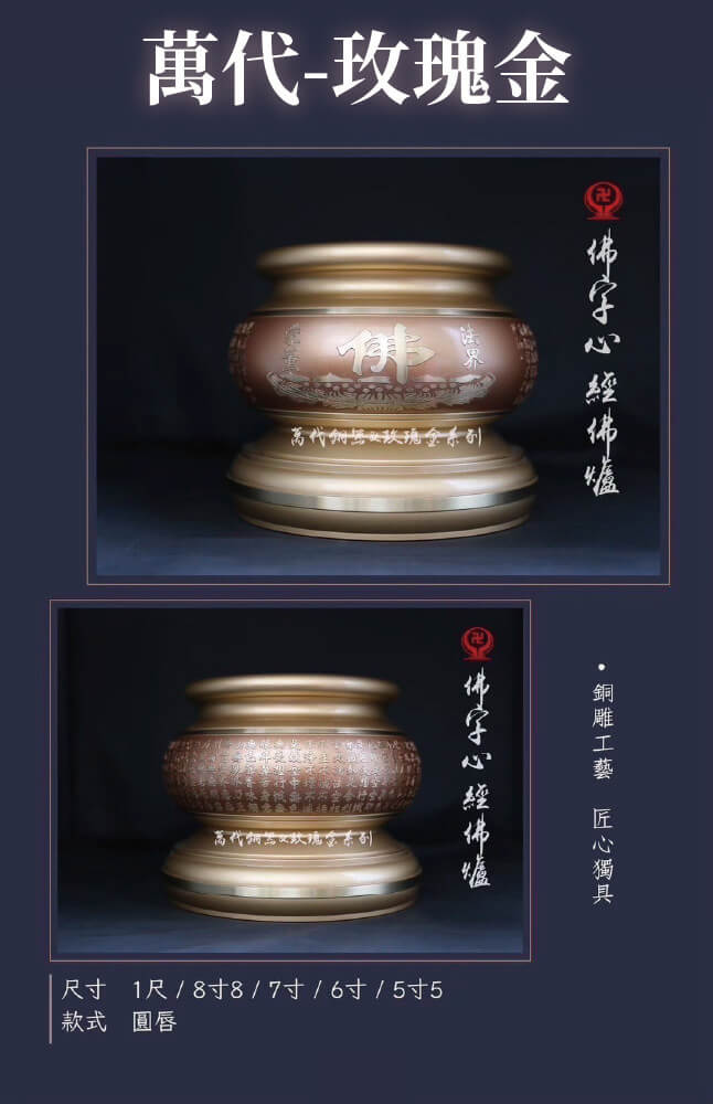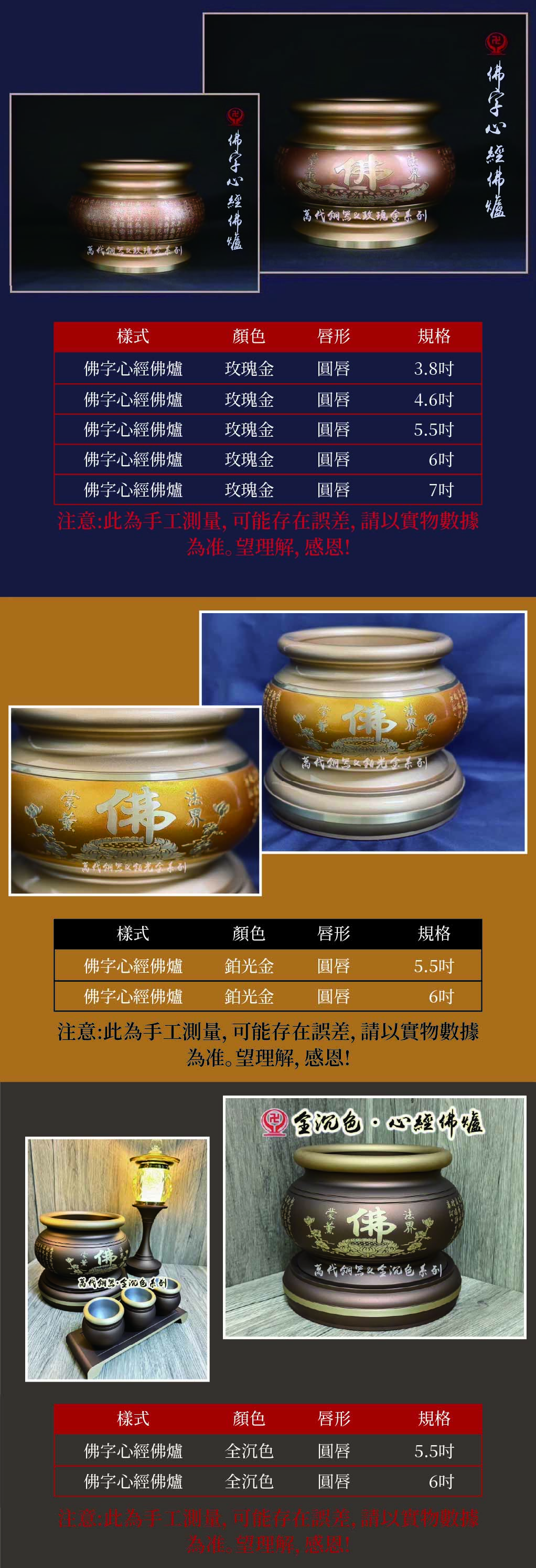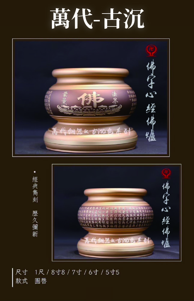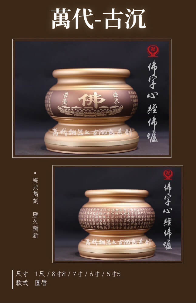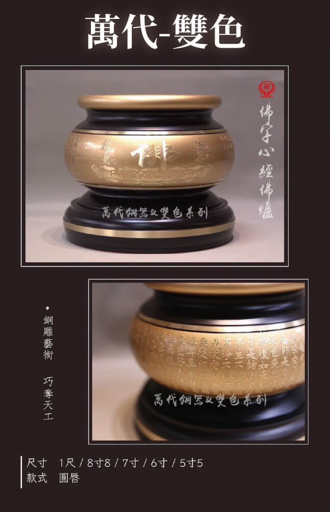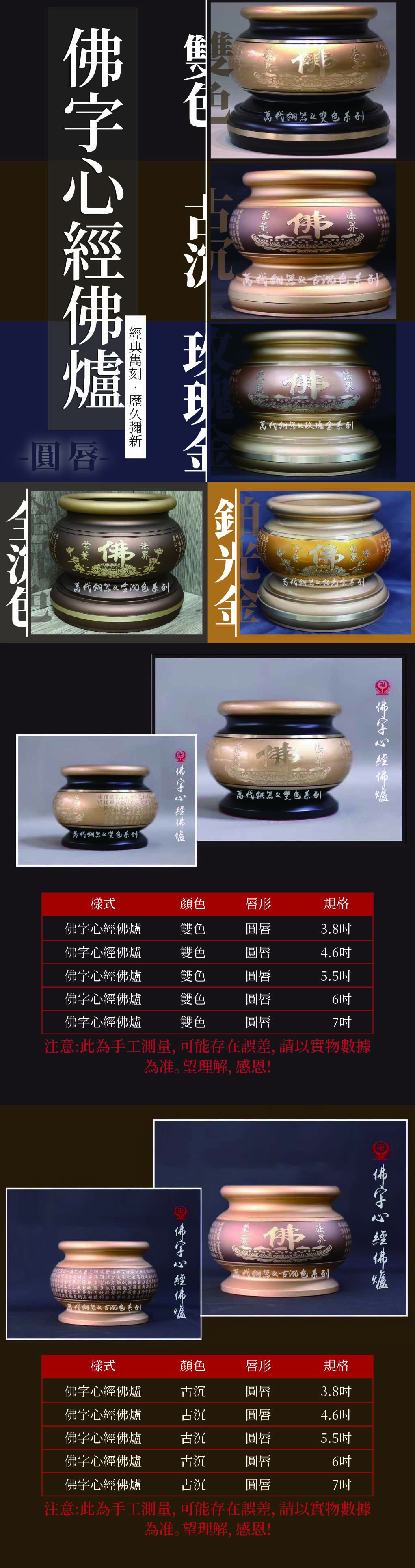 home 首頁 navigate_next 產品專區 navigate_next (C)萬代銅器 navigate_next (C-1)佛爐 navigate_next 佛字心經佛爐(圓唇)