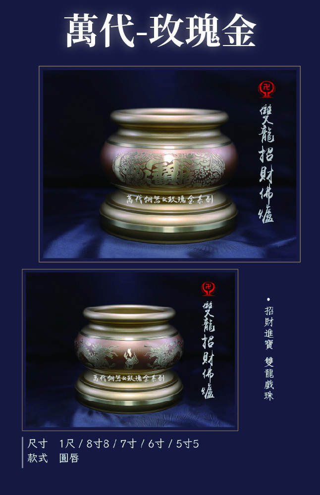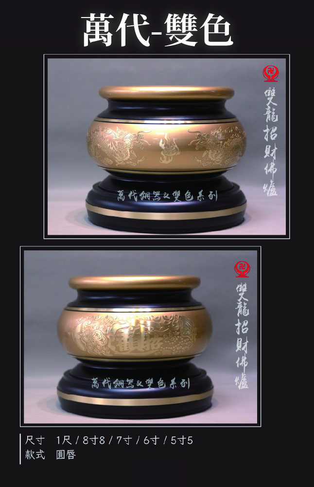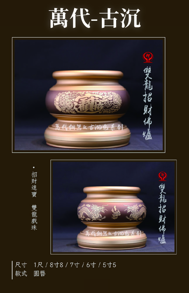home 首頁 navigate_next 產品專區 navigate_next (C)萬代銅器 navigate_next (C-1)佛爐 navigate_next 雙龍招財佛爐(圓唇)