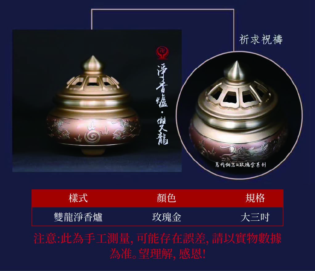 home 首頁 navigate_next 產品專區 navigate_next (C)萬代銅器 navigate_next (C-4)淨香爐 navigate_next 雙龍淨香爐