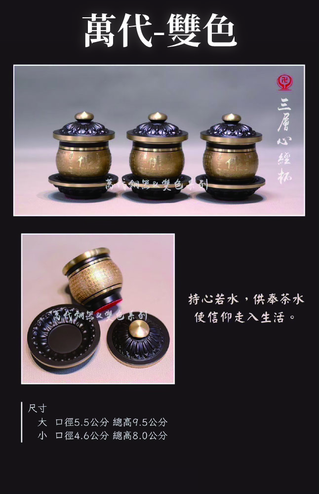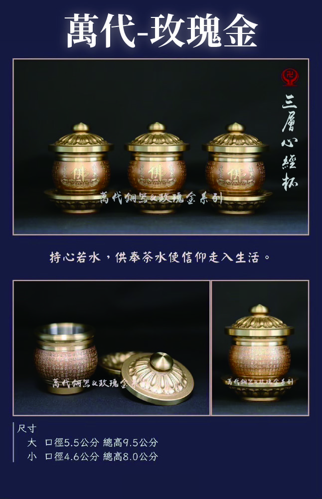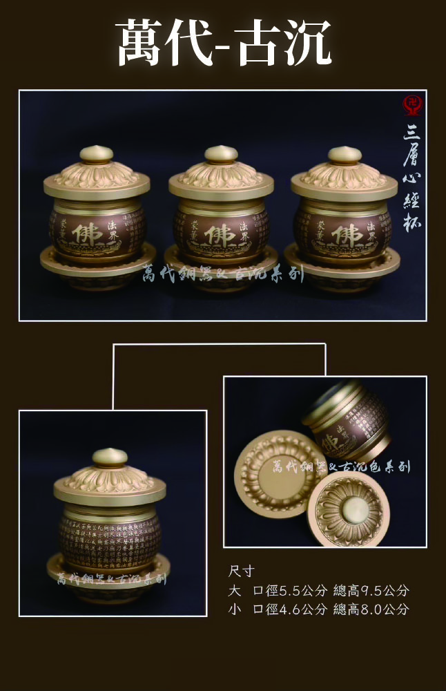 home 首頁 navigate_next 產品專區 navigate_next (C)萬代銅器 navigate_next (C-5)三層杯/鍛銅杯/圓滿敬台 navigate_next 三層心經杯