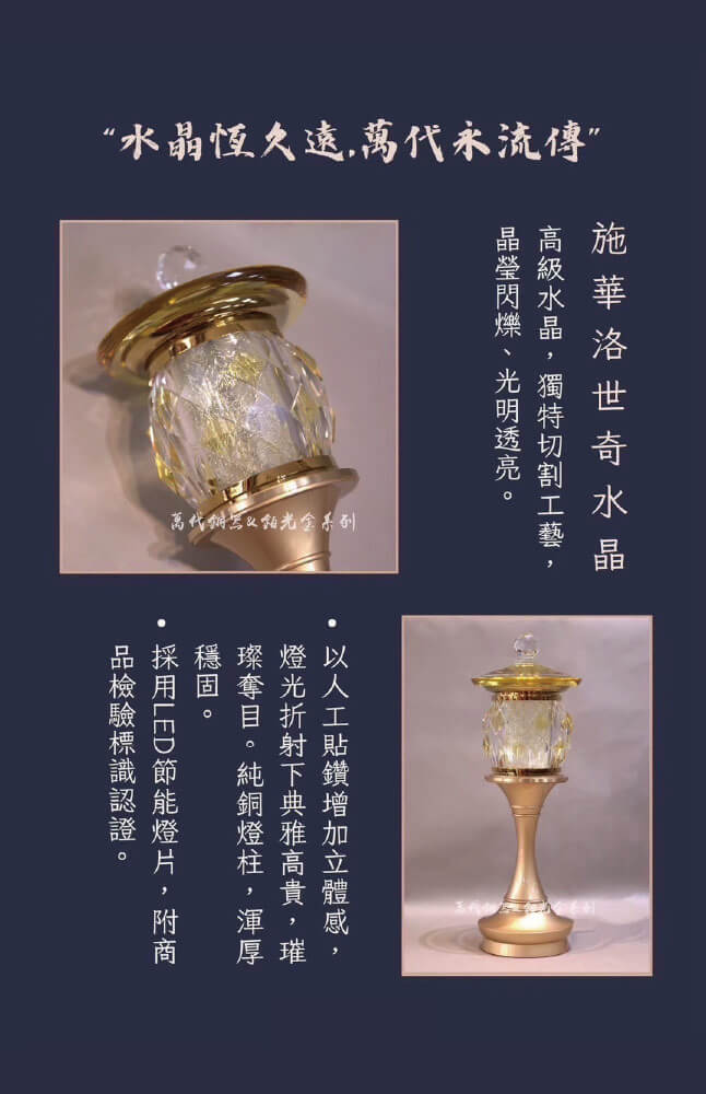 home 首頁 navigate_next 產品專區 navigate_next (C)萬代銅器 navigate_next (C-7)供燈 navigate_next 圓滿晶柱燈