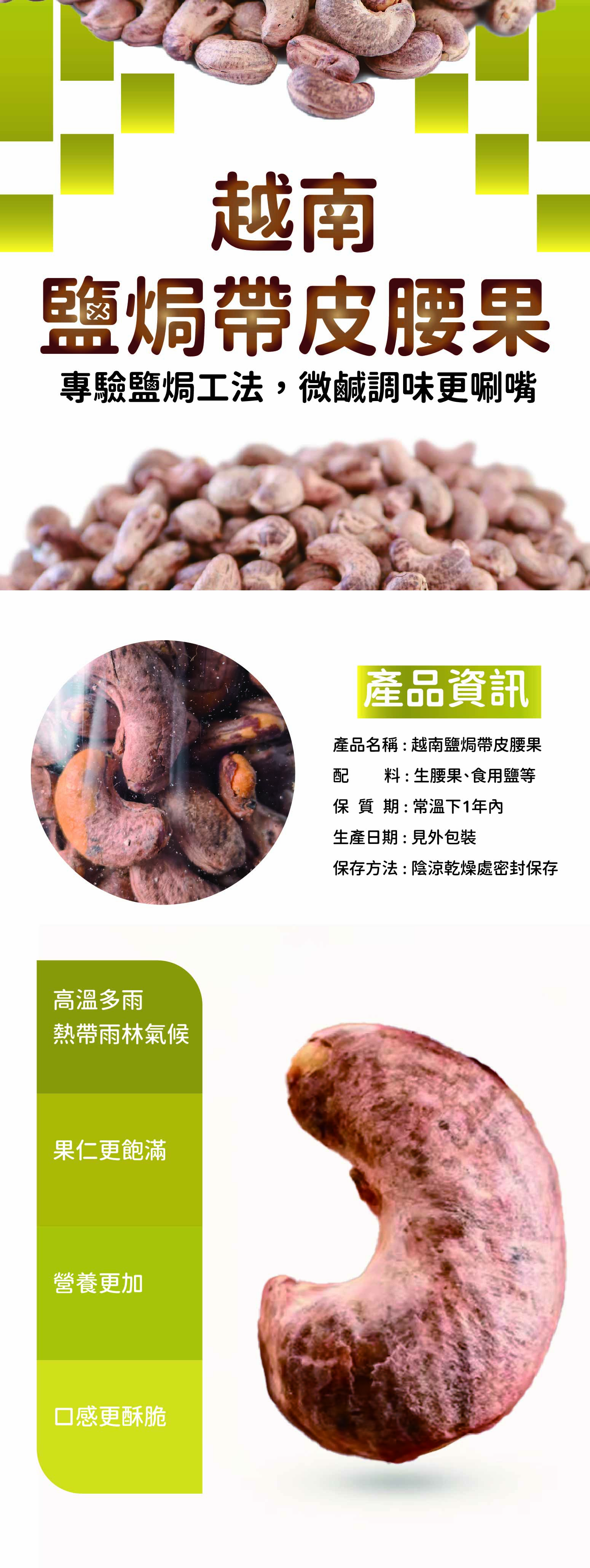 home 首頁 navigate_next 產品專區 navigate_next (S)食品 navigate_next (S-1)腰果 navigate_next 越南鹽焗帶皮腰果禮盒