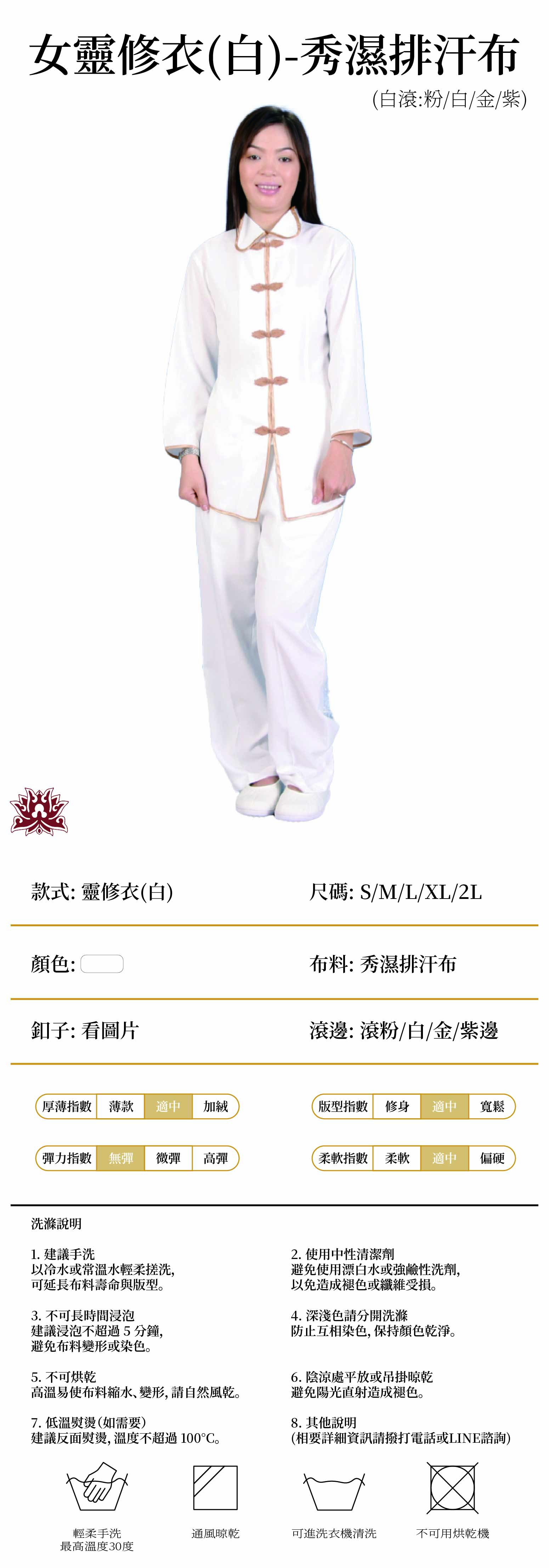 女-靈修服白(秀濕排汗布布)