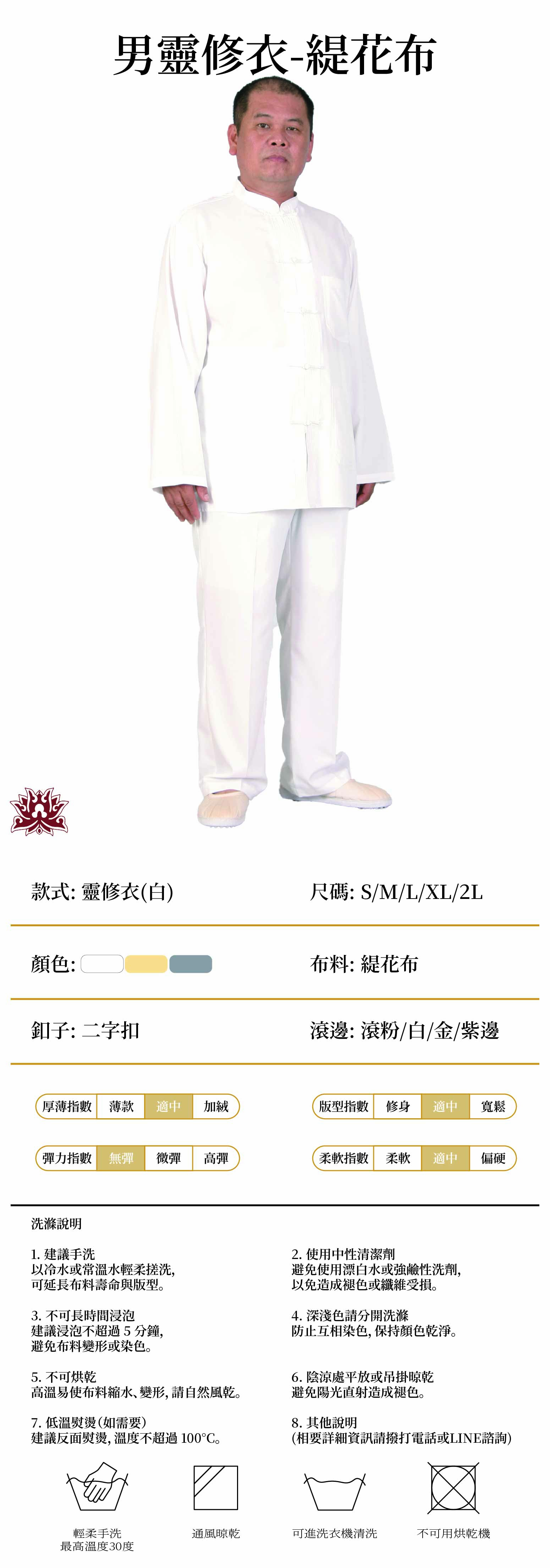 home 首頁 navigate_next 產品專區 navigate_next (G)道教衣服 navigate_next (G-5)靈修衣服 navigate_next 男-靈修服(提花布)