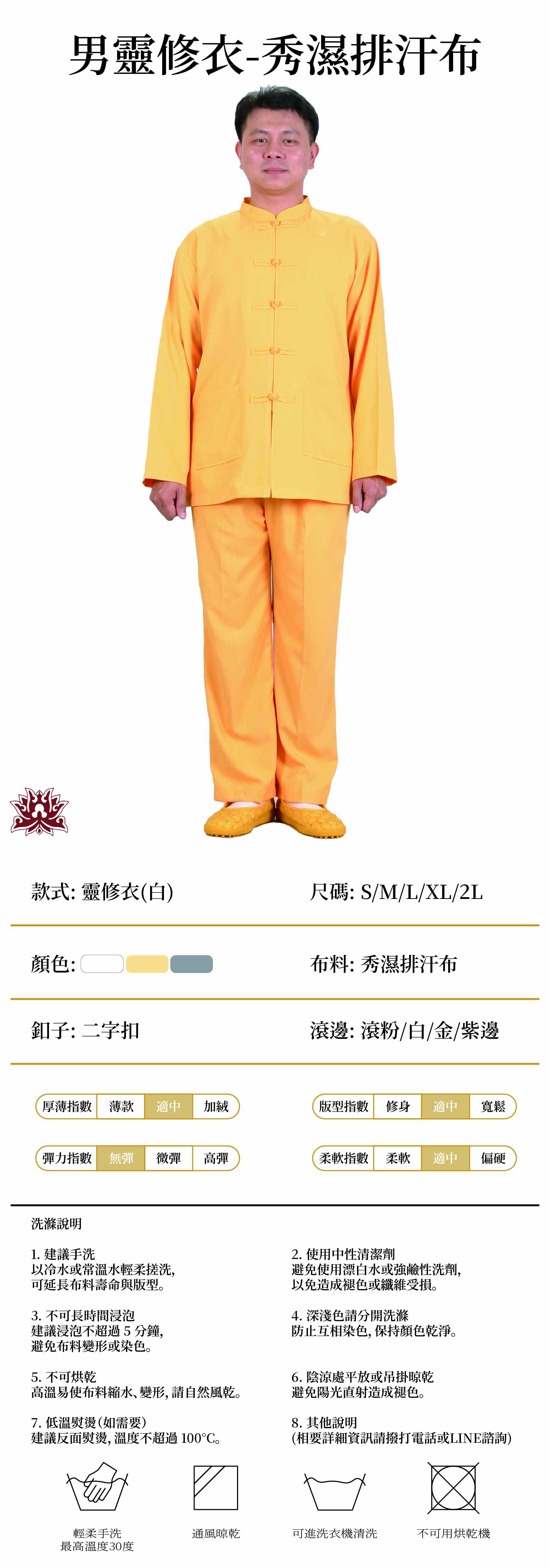 home 首頁 navigate_next 產品專區 navigate_next (G)道教衣服 navigate_next (G-5)靈修衣服 navigate_next 男-靈修服(秀濕排汗布)