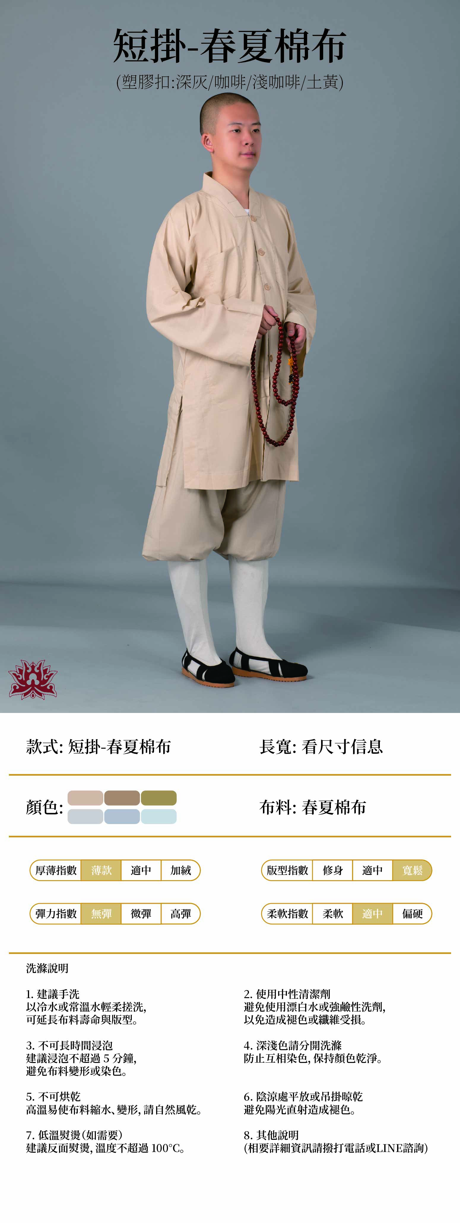 home 首頁 navigate_next 產品專區 navigate_next (E)弘喧僧服 navigate_next (E-3)短掛 navigate_next 短掛-春夏棉布(塑膠扣)