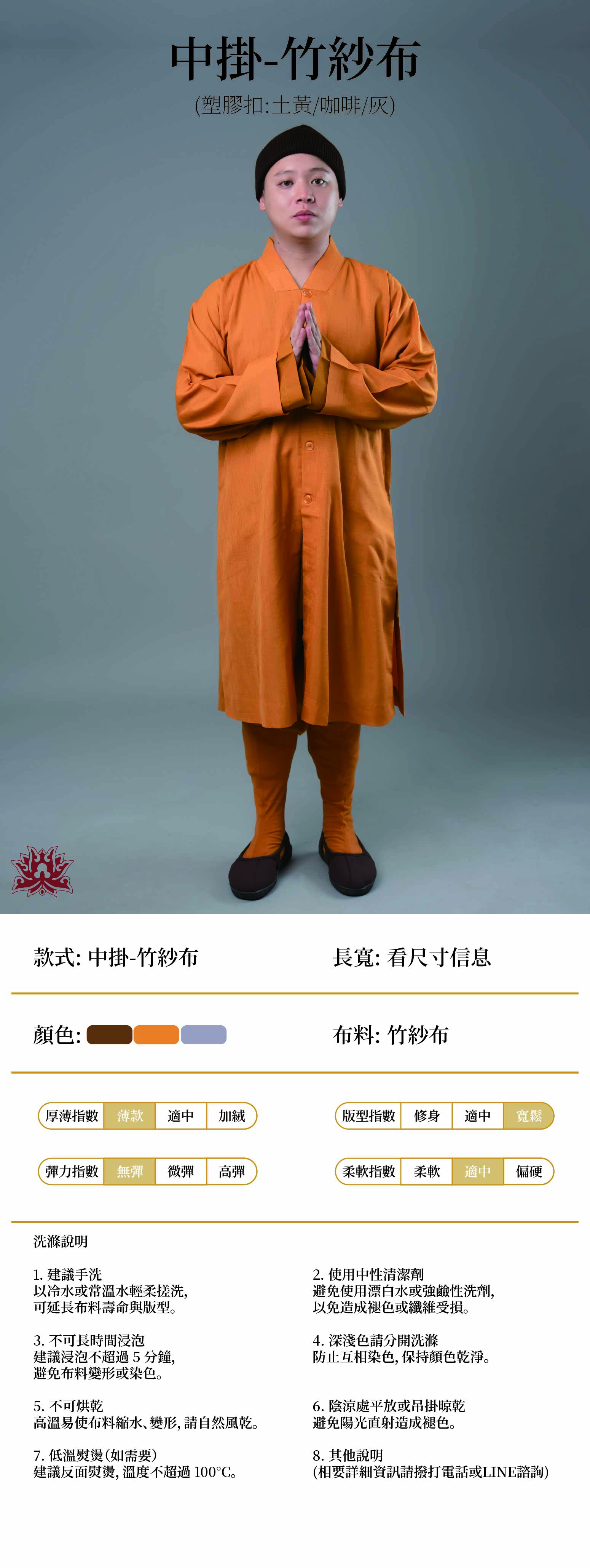home 首頁 navigate_next 產品專區 navigate_next (E)弘喧僧服 navigate_next (E-4)中掛 navigate_next 中掛-竹紗布(塑膠扣)