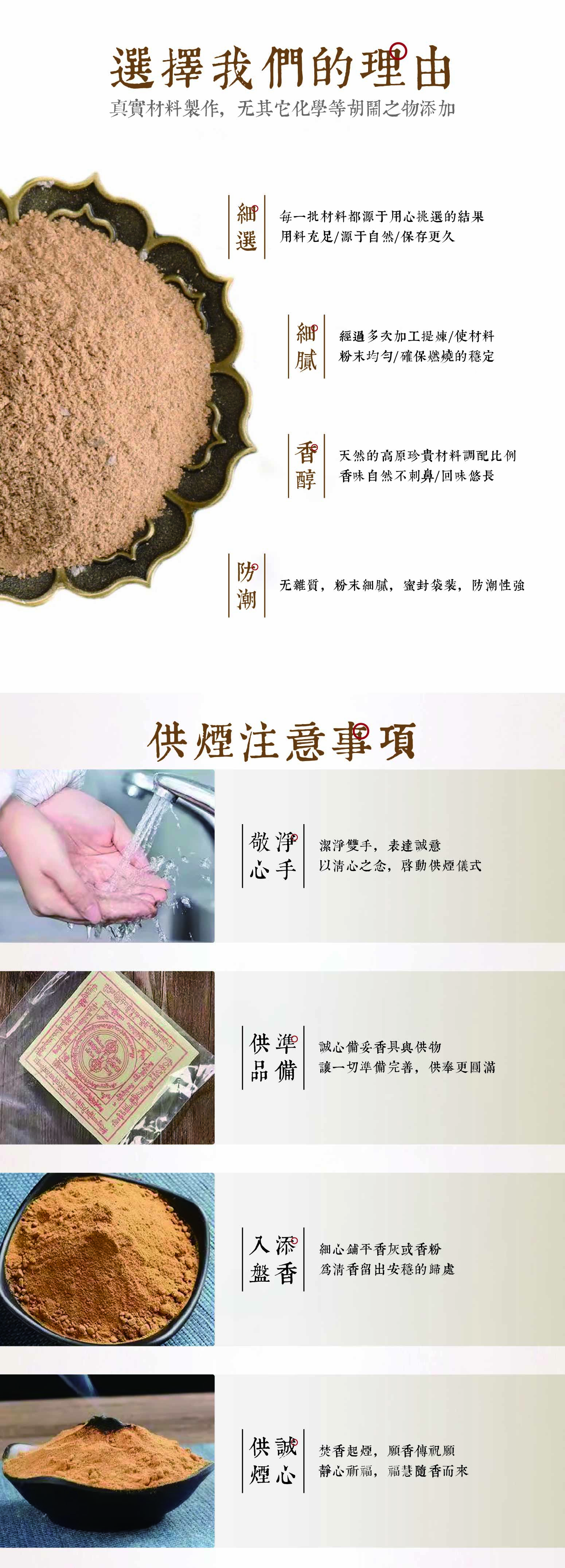 home 首頁 navigate_next 產品專區 navigate_next (D)弘喧沉香香品 navigate_next (D-5)香粉 navigate_next 崧浥煙供香+靜心藥師香