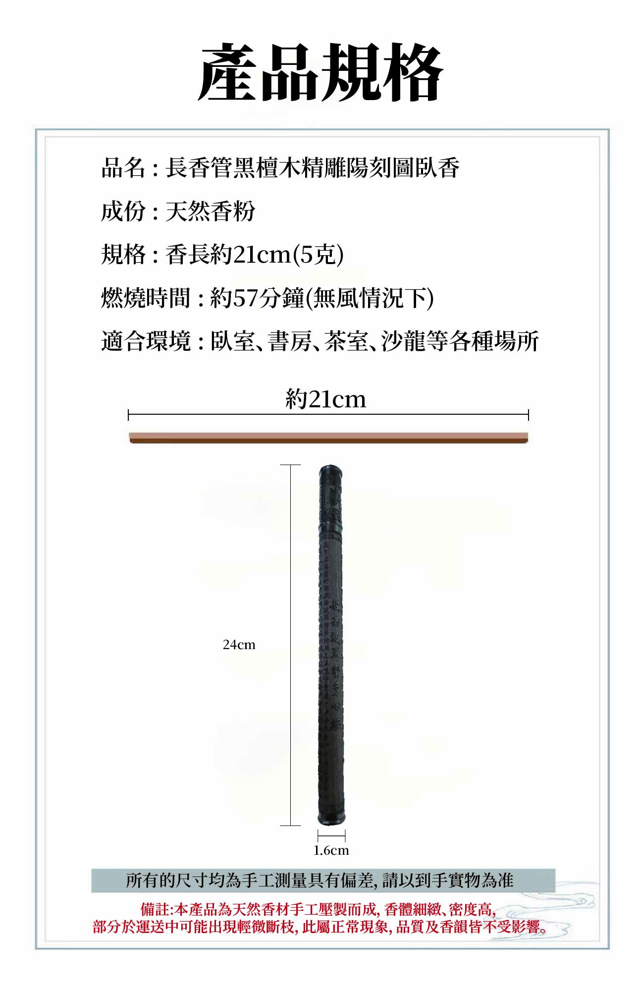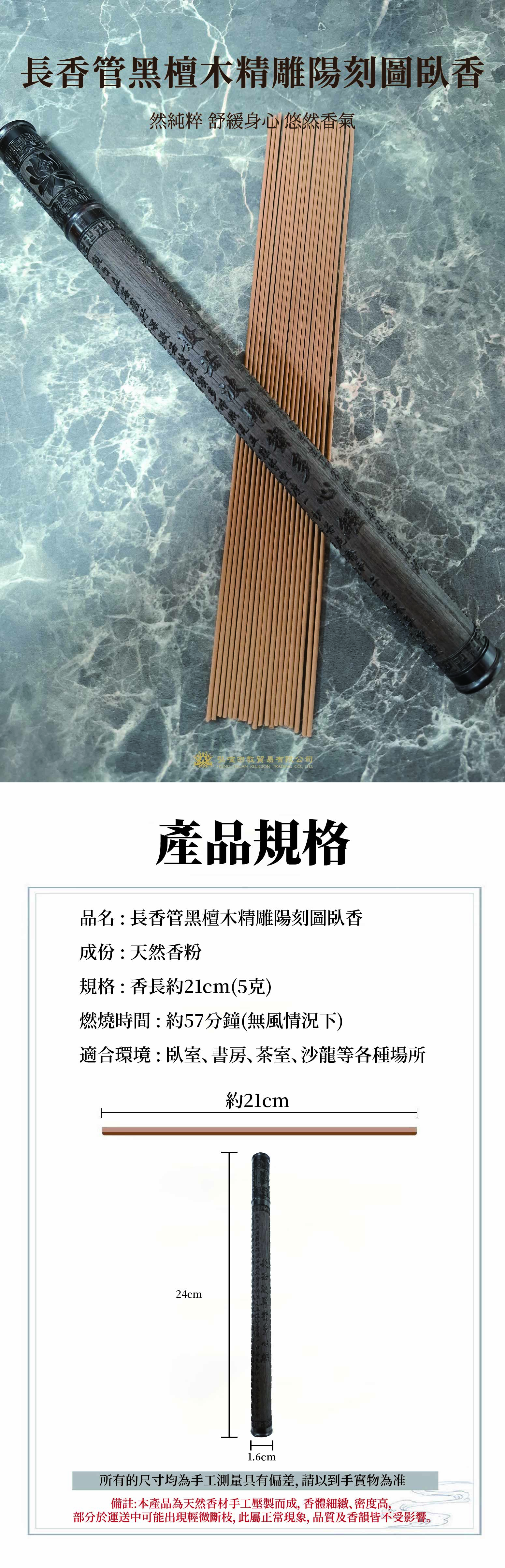 home 首頁 navigate_next 產品專區 navigate_next (D)弘喧沉香香品 navigate_next (D-3)臥香 navigate_next 長香管黑檀木精雕陽刻圖臥香