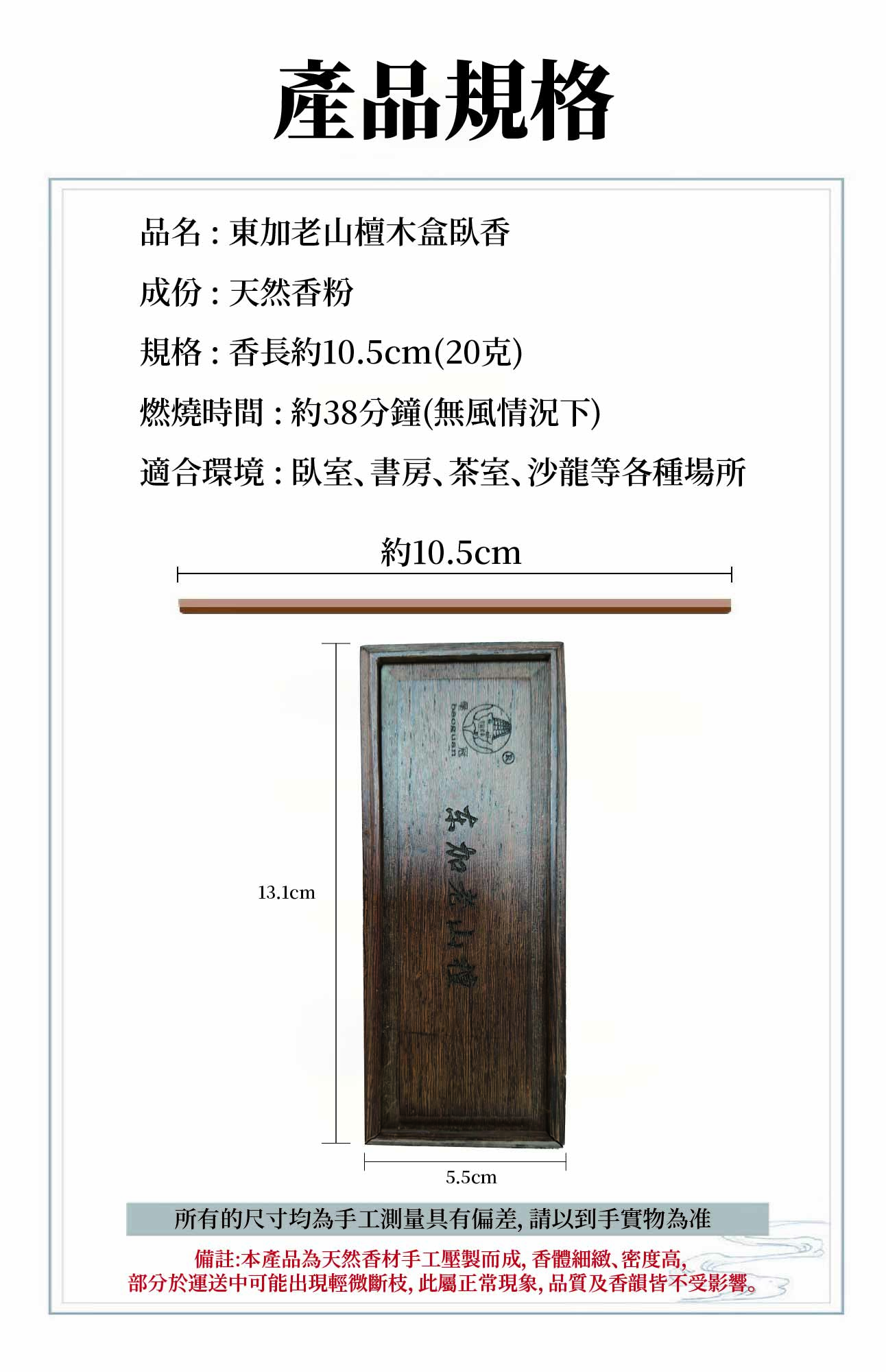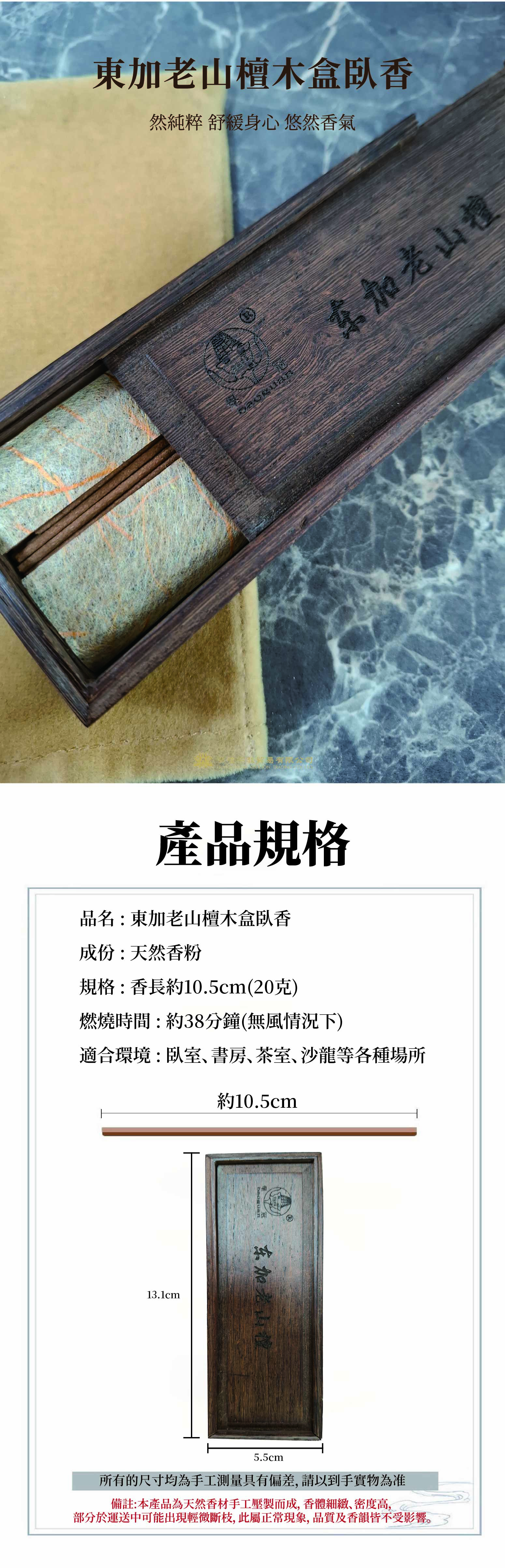 home 首頁 navigate_next 產品專區 navigate_next (D)弘喧沉香香品 navigate_next (D-3)臥香 navigate_next 東加老山檀木盒臥香