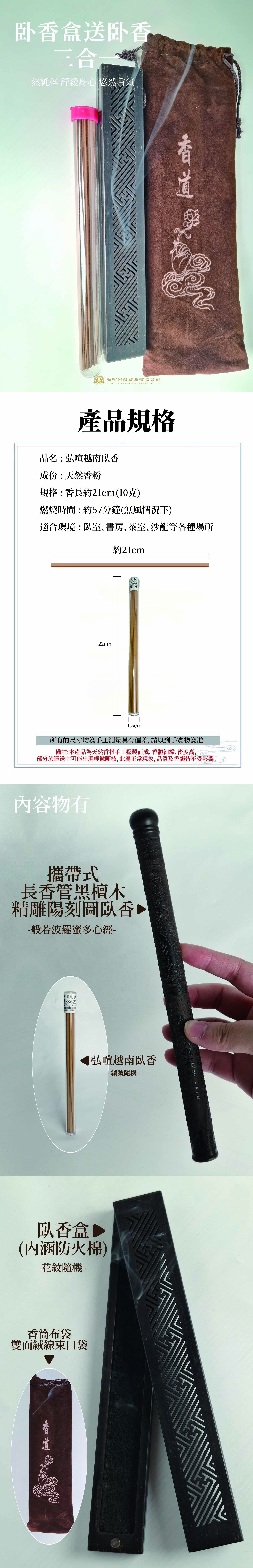 home 首頁 navigate_next 產品專區 navigate_next (D)弘喧沉香香品 navigate_next (D-3)臥香 navigate_next 卧香盒送卧香21CM 三合一