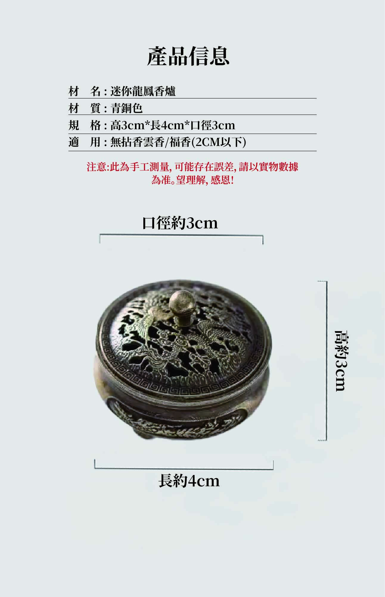 home 首頁 navigate_next 產品專區 navigate_next (D)弘喧沉香香品 navigate_next (D-9)香架/香爐/香插座 navigate_next 迷你龍鳳香爐