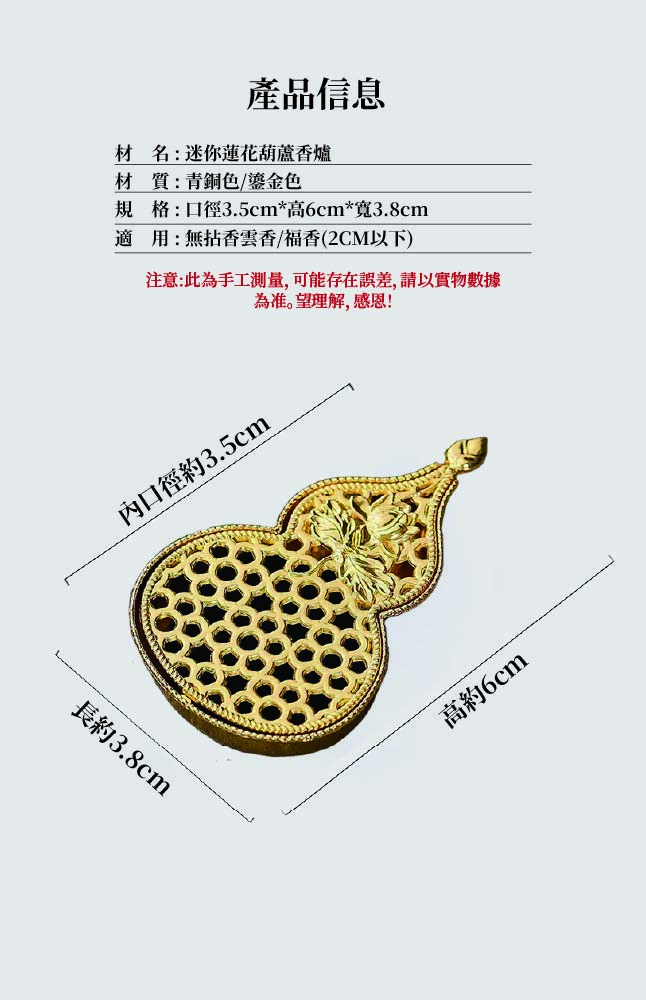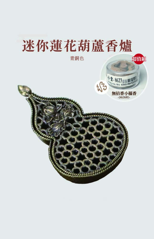 home 首頁 navigate_next 產品專區 navigate_next (D)弘喧沉香香品 navigate_next (D-9)香架/香爐/香插座 navigate_next 迷你蓮花葫蘆香爐