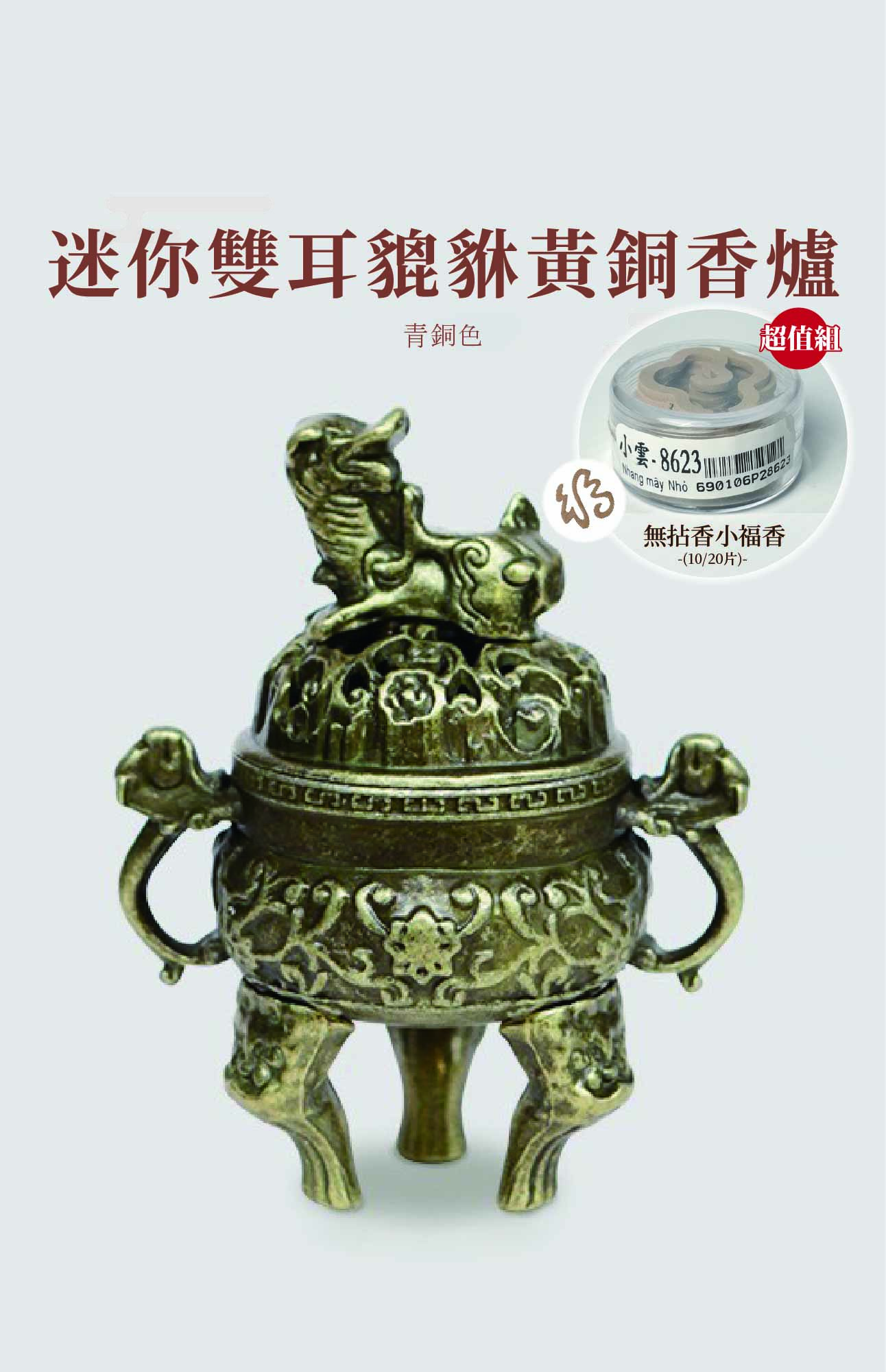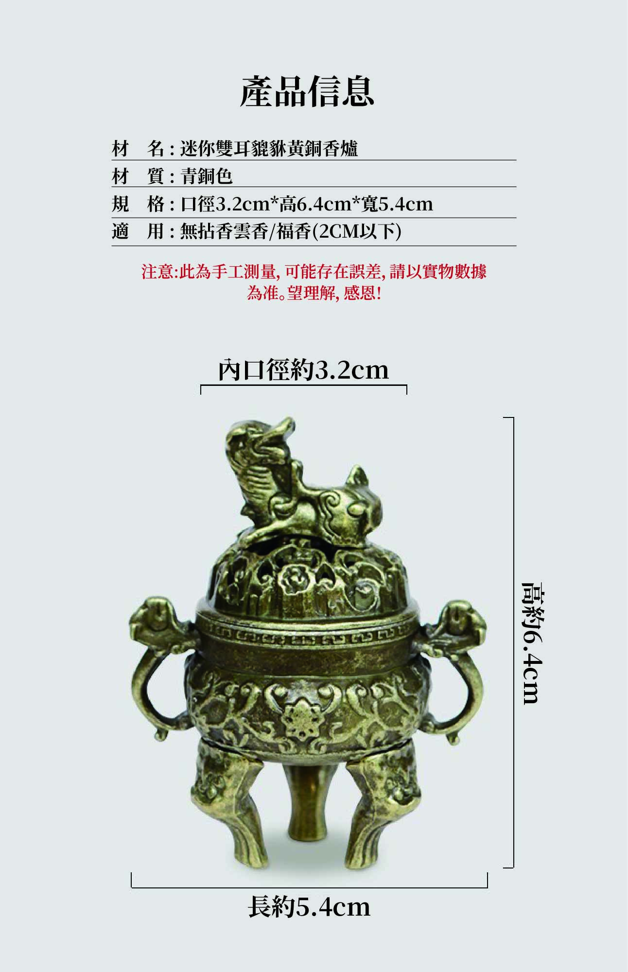home 首頁 navigate_next 產品專區 navigate_next (D)弘喧沉香香品 navigate_next (D-9)香架/香爐/香插座 navigate_next 迷你雙耳貔貅黃銅香爐