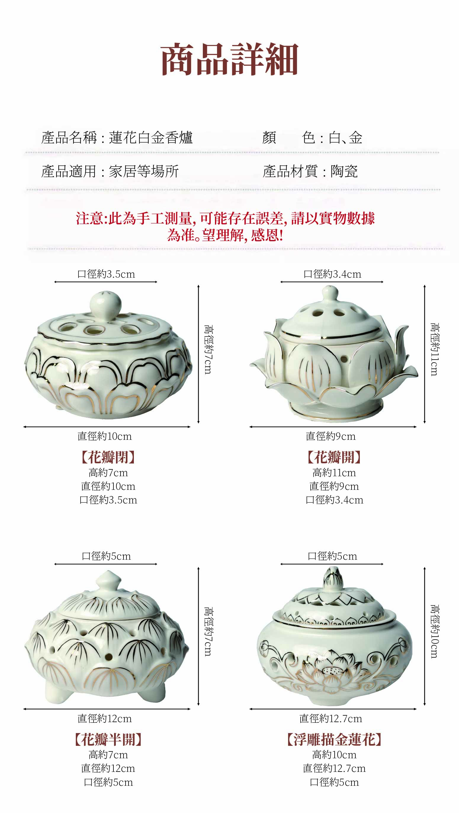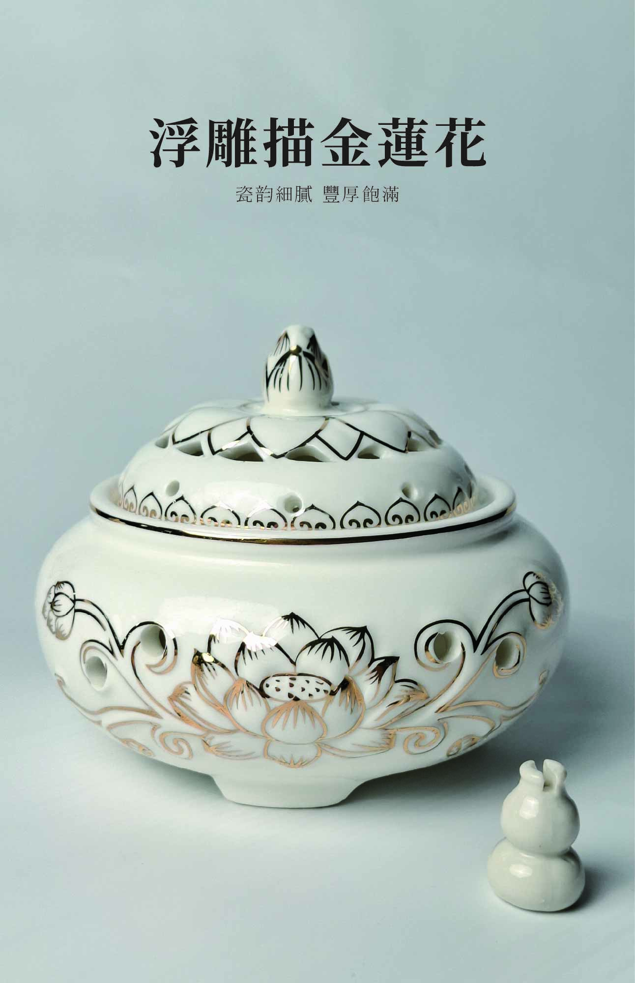 蓮花白金香爐