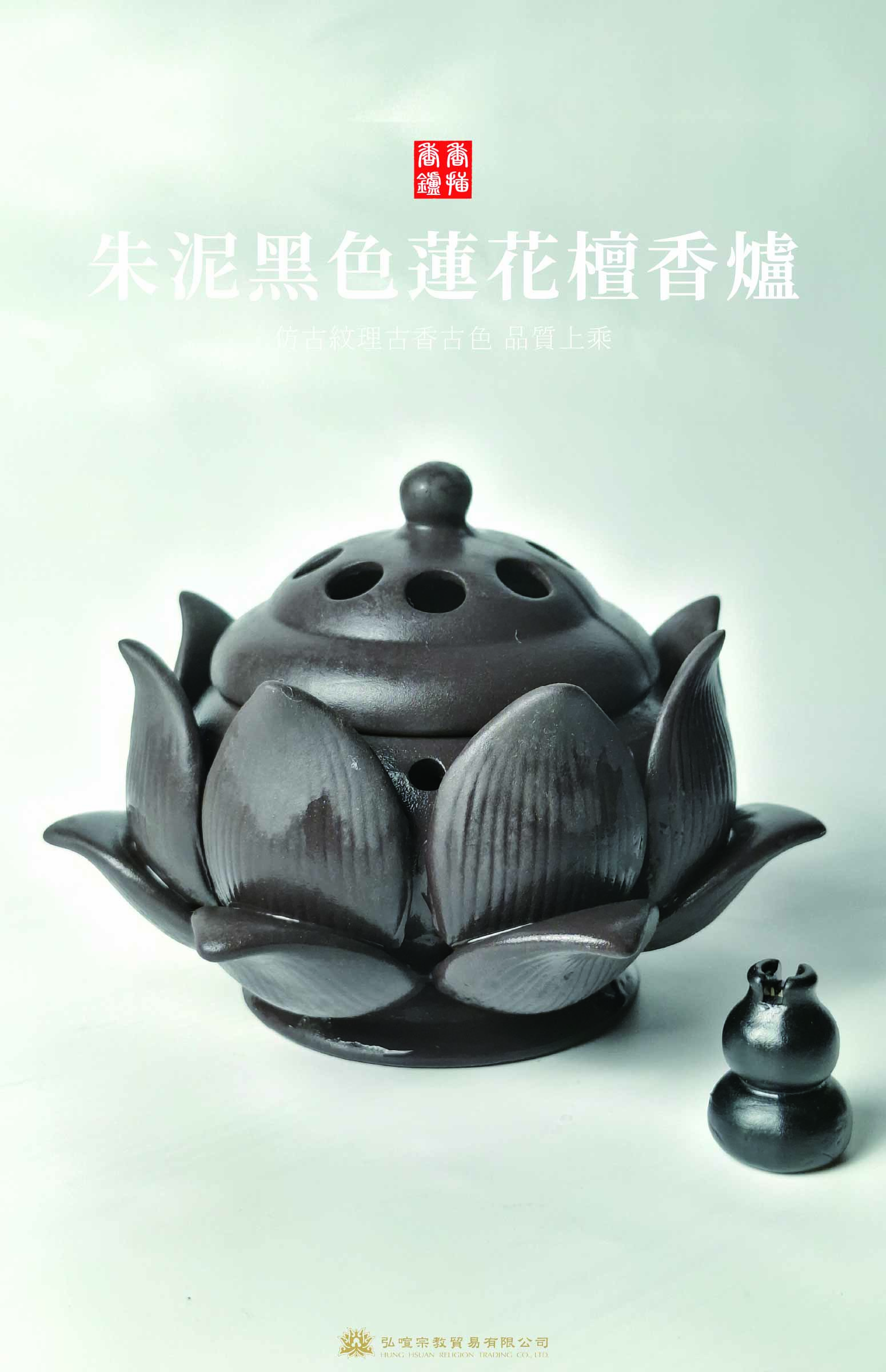 朱泥黑色蓮花檀香爐