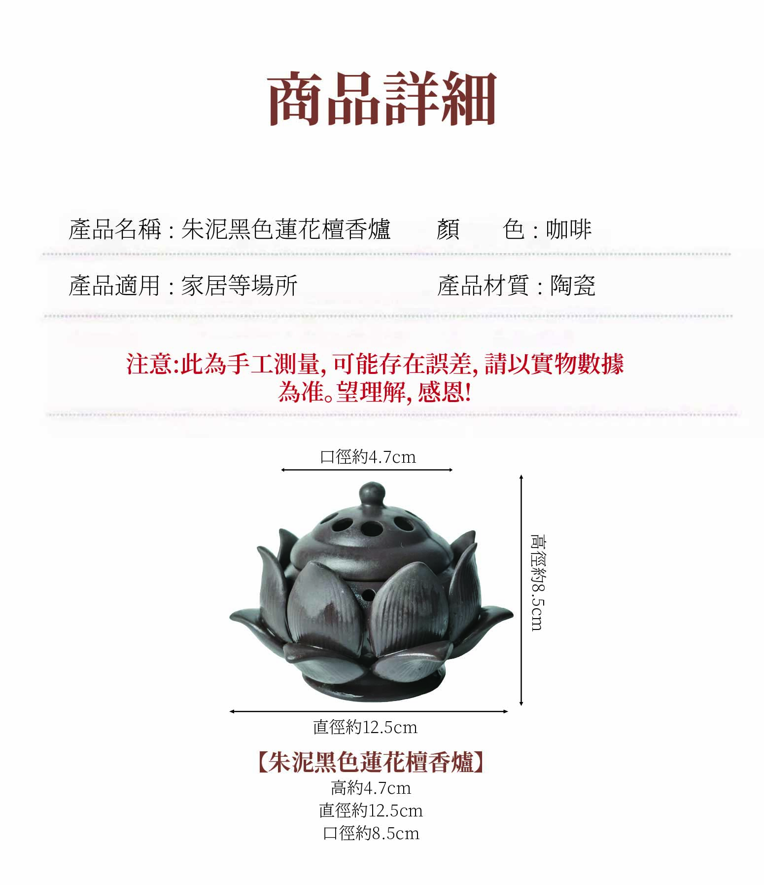 home 首頁 navigate_next 產品專區 navigate_next (D)弘喧沉香香品 navigate_next (D-9)香架/香爐/香插座 navigate_next 朱泥黑色蓮花檀香爐