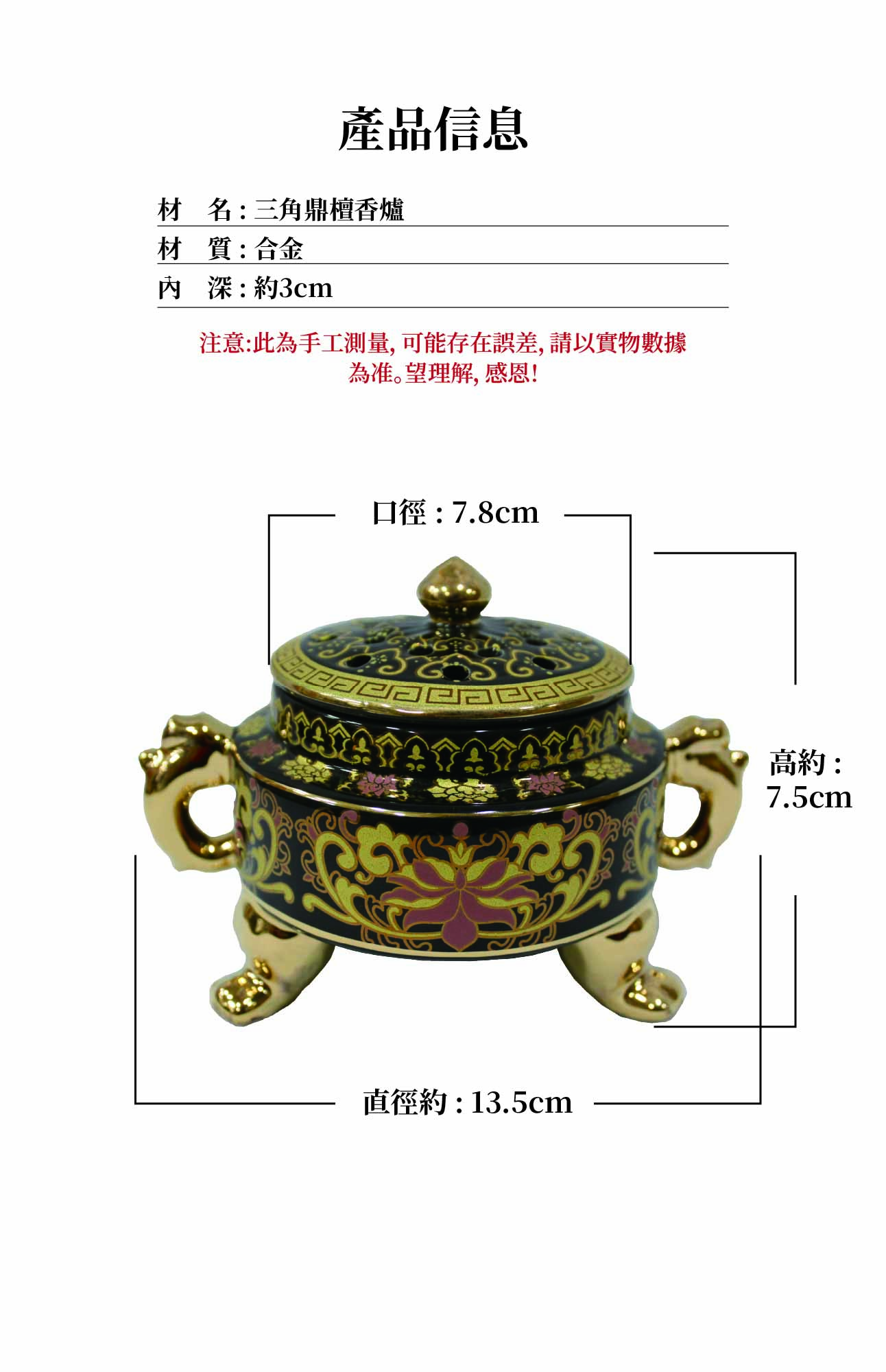home 首頁 navigate_next 產品專區 navigate_next (D)弘喧沉香香品 navigate_next (D-9)香架/香爐/香插座 navigate_next 三角鼎檀香爐