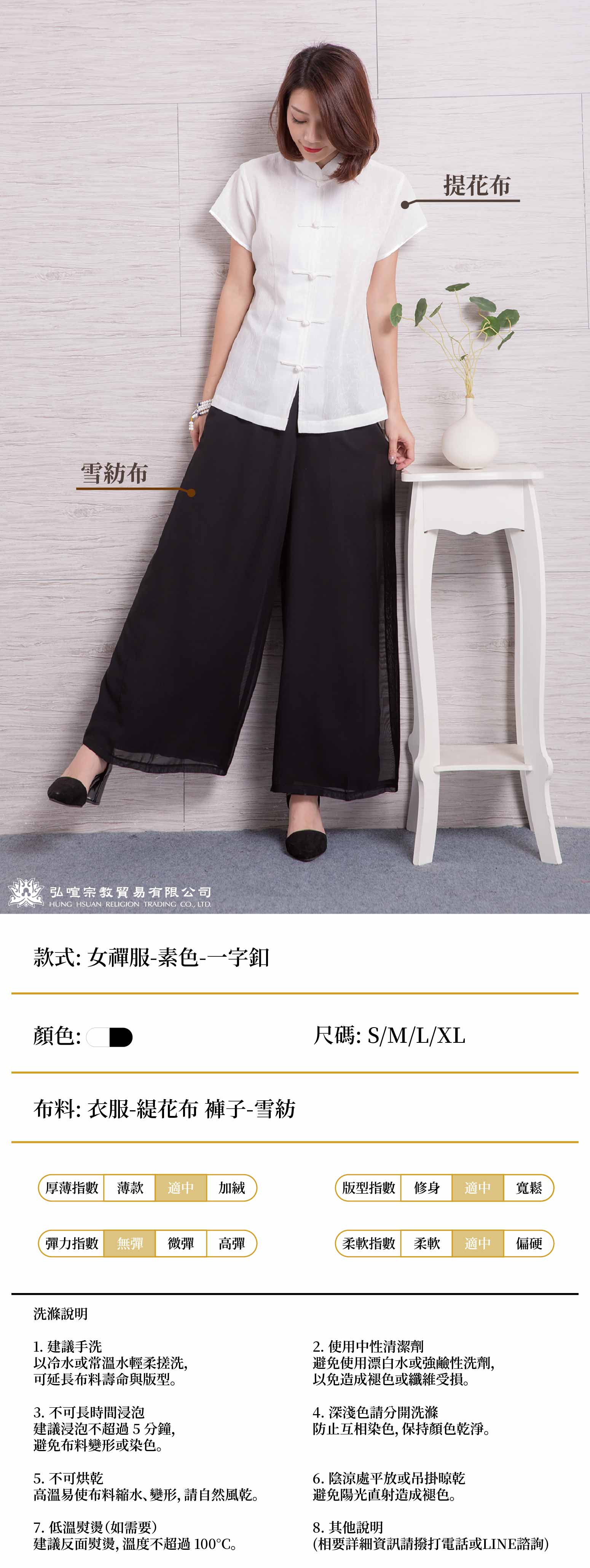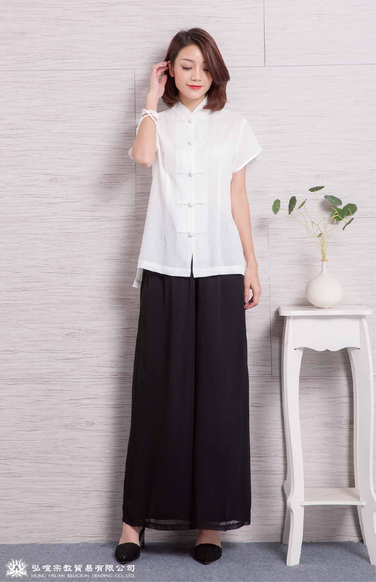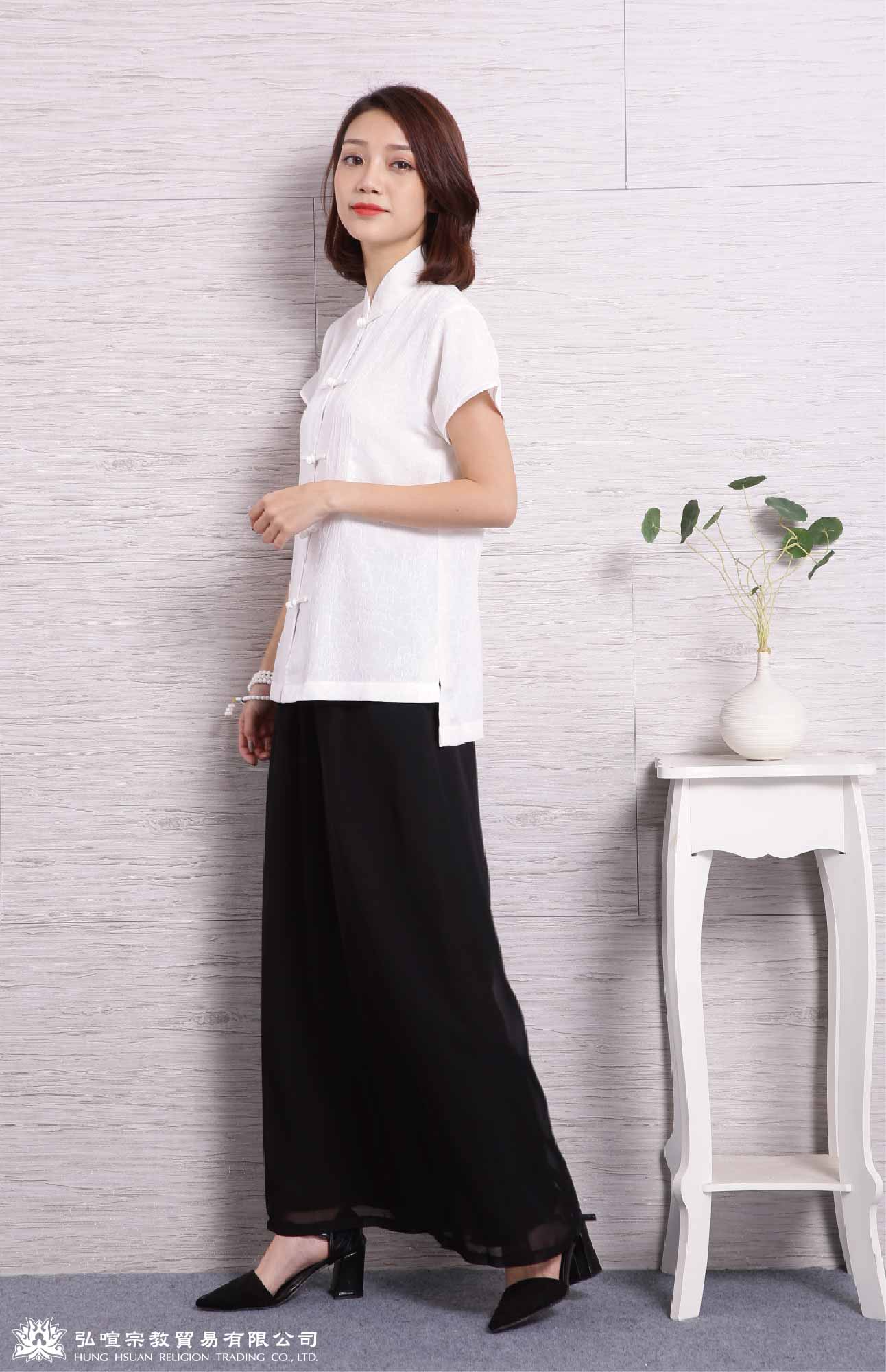 女禪服素色-一字釦 (衣服:緹花布 褲子:雪紡布)