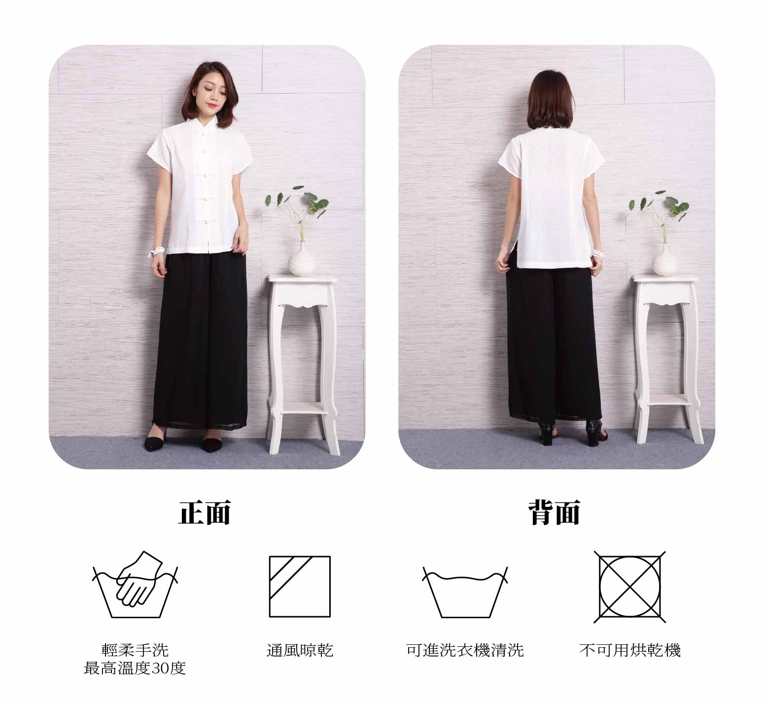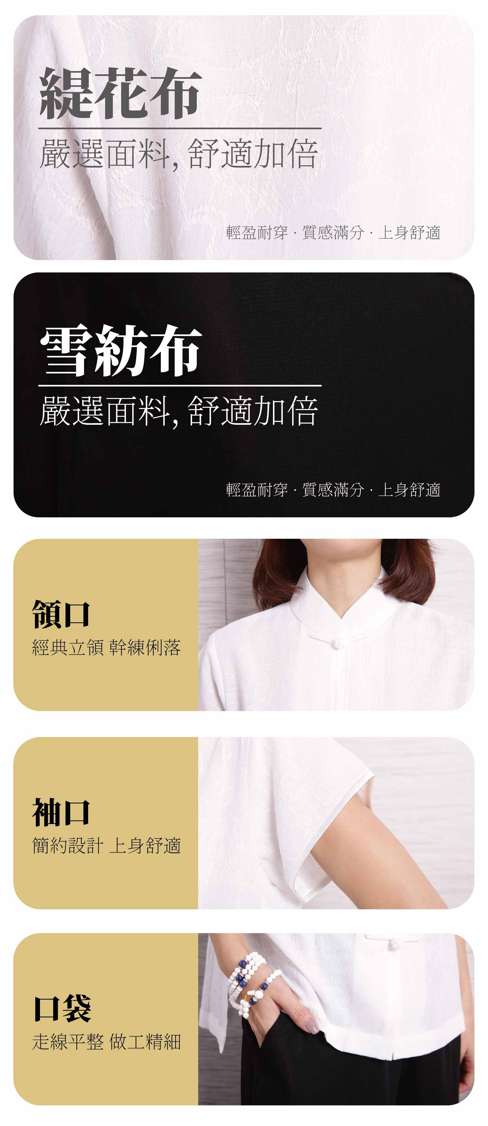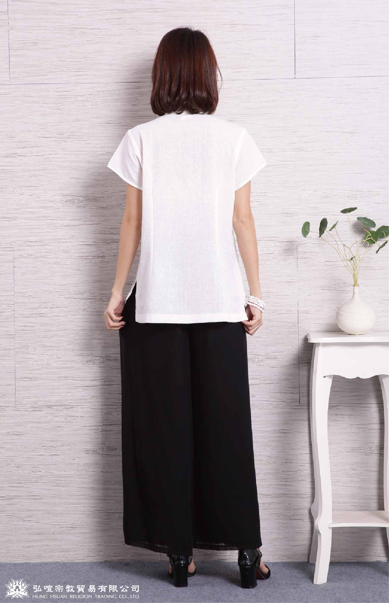 女禪服素色-一字釦 (衣服:緹花布 褲子:雪紡布)