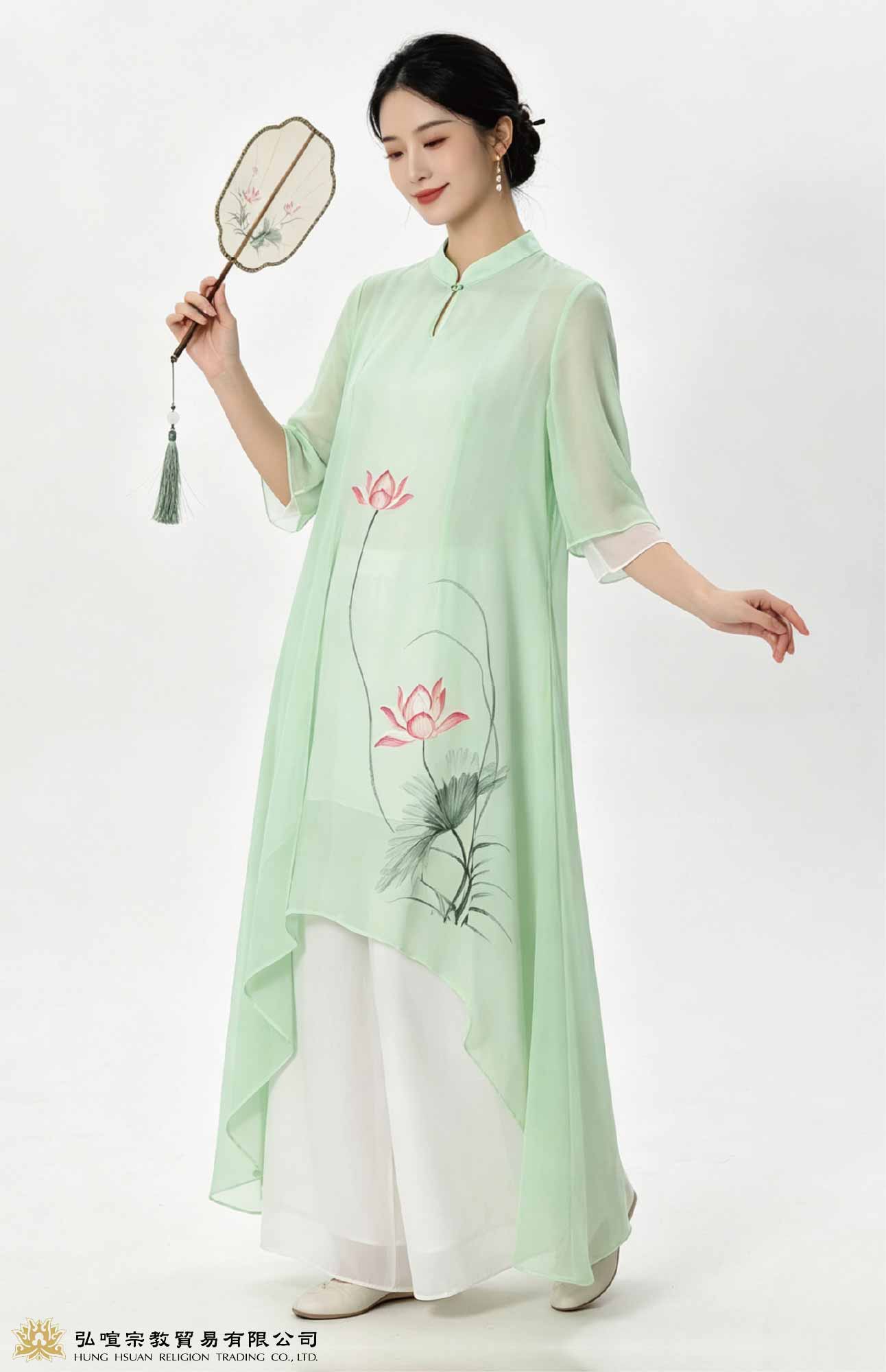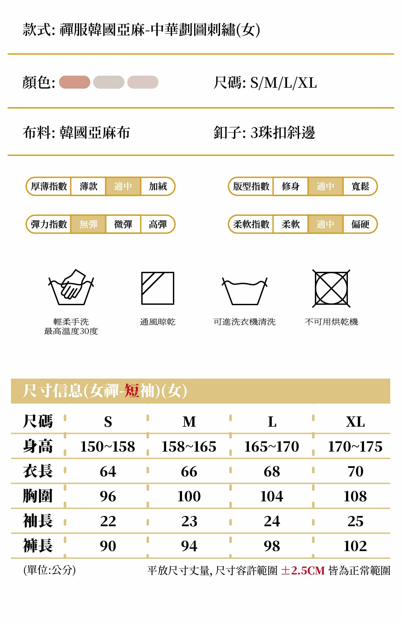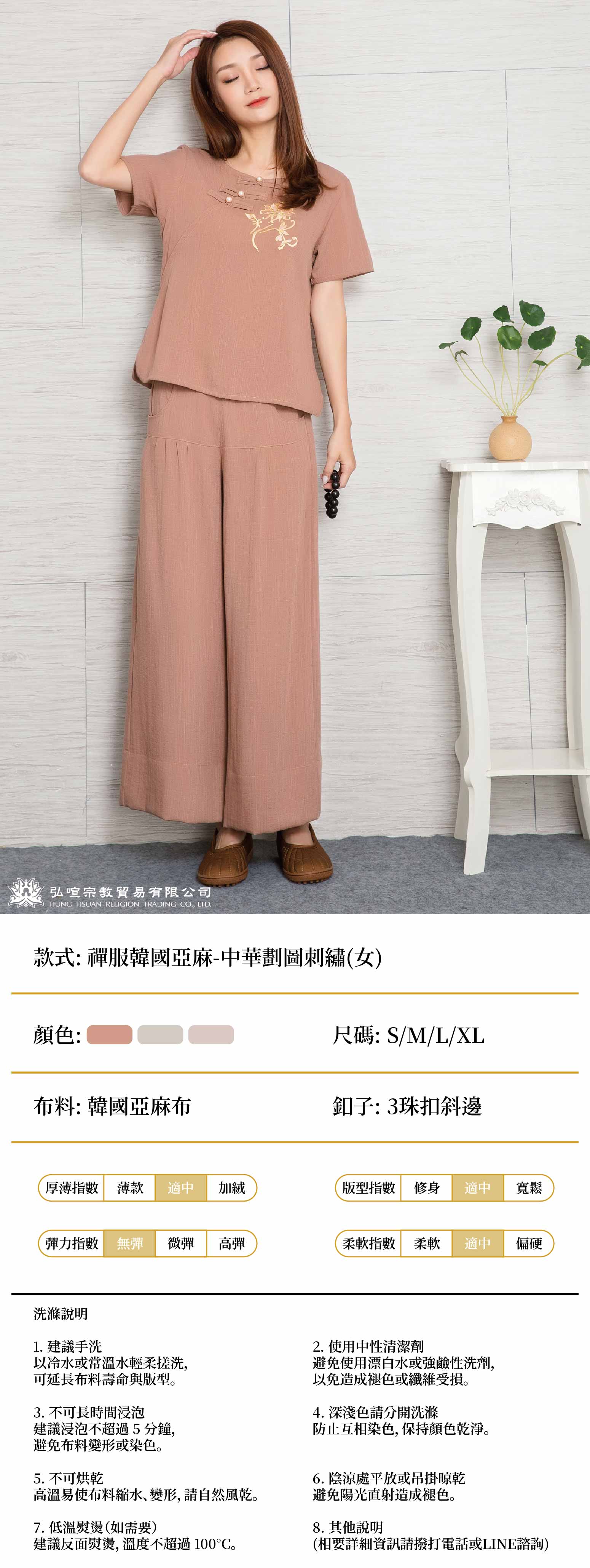 女禪服韓國亞麻-中華劃圖刺繡
