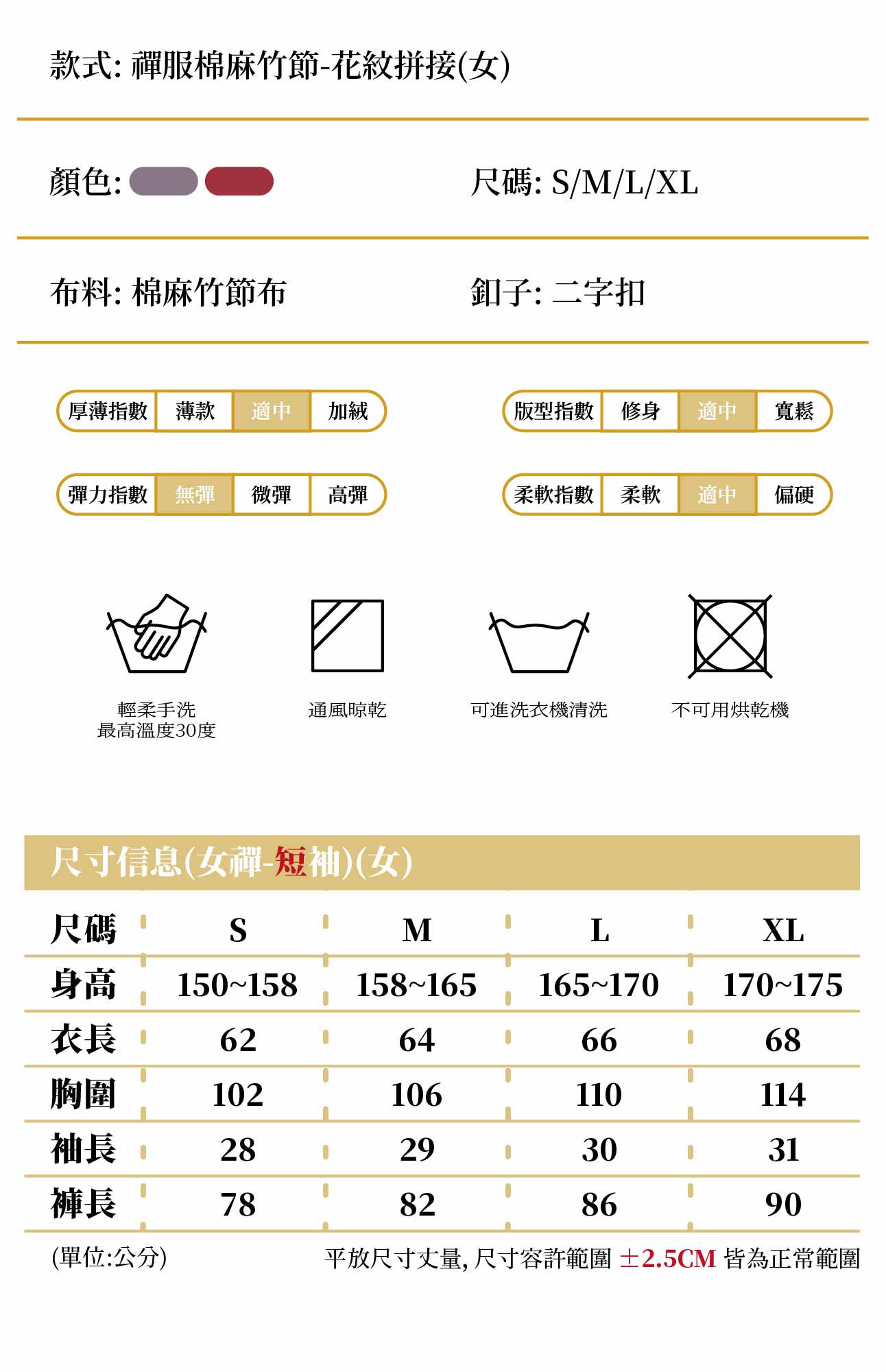 收到貨發現尺寸有議須退/換貨不可下水清洗僅供試穿,商標均須保持完整