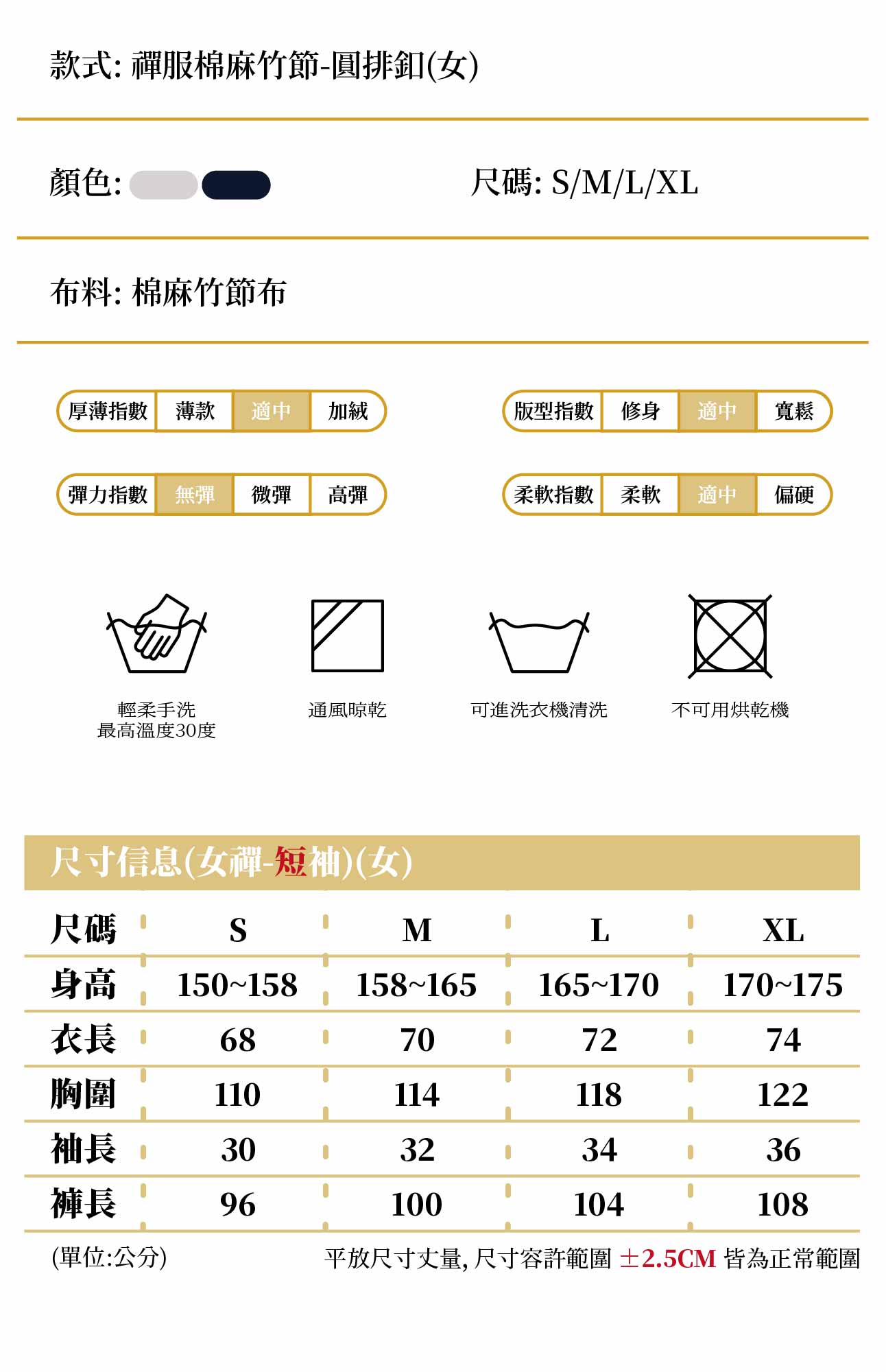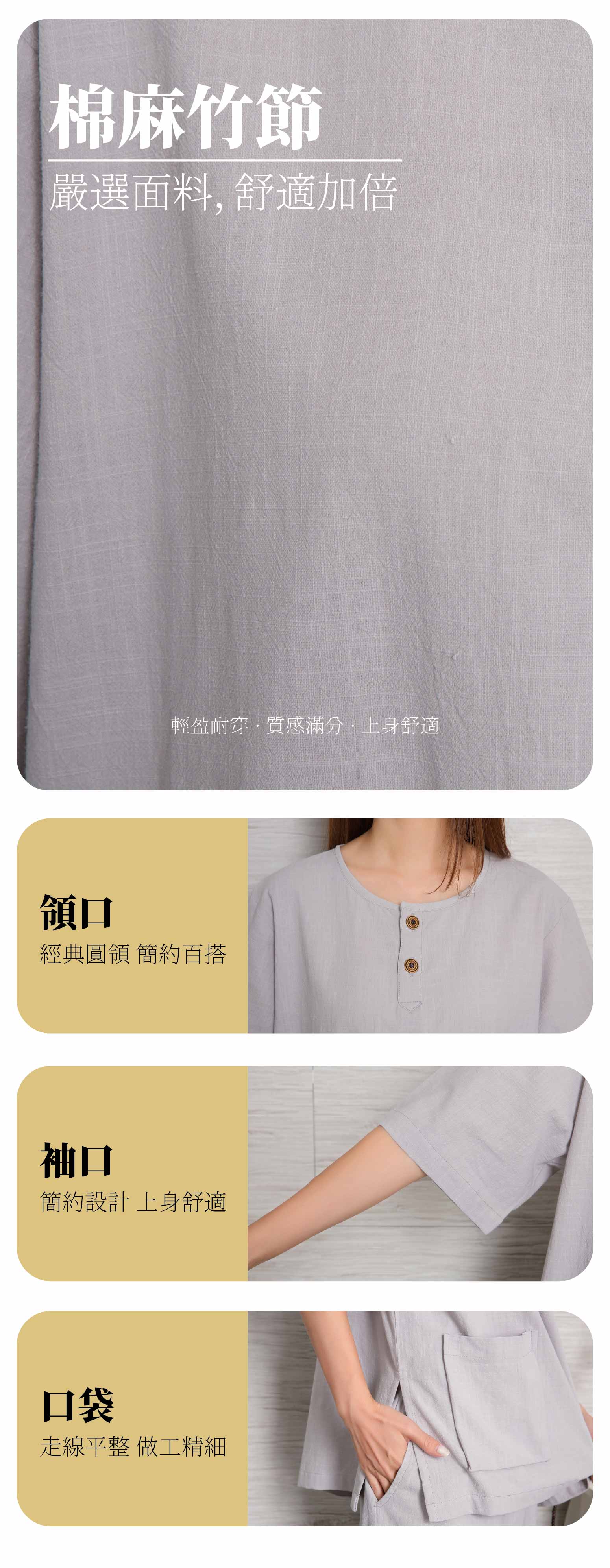 女禪服棉麻竹節-圓排釦