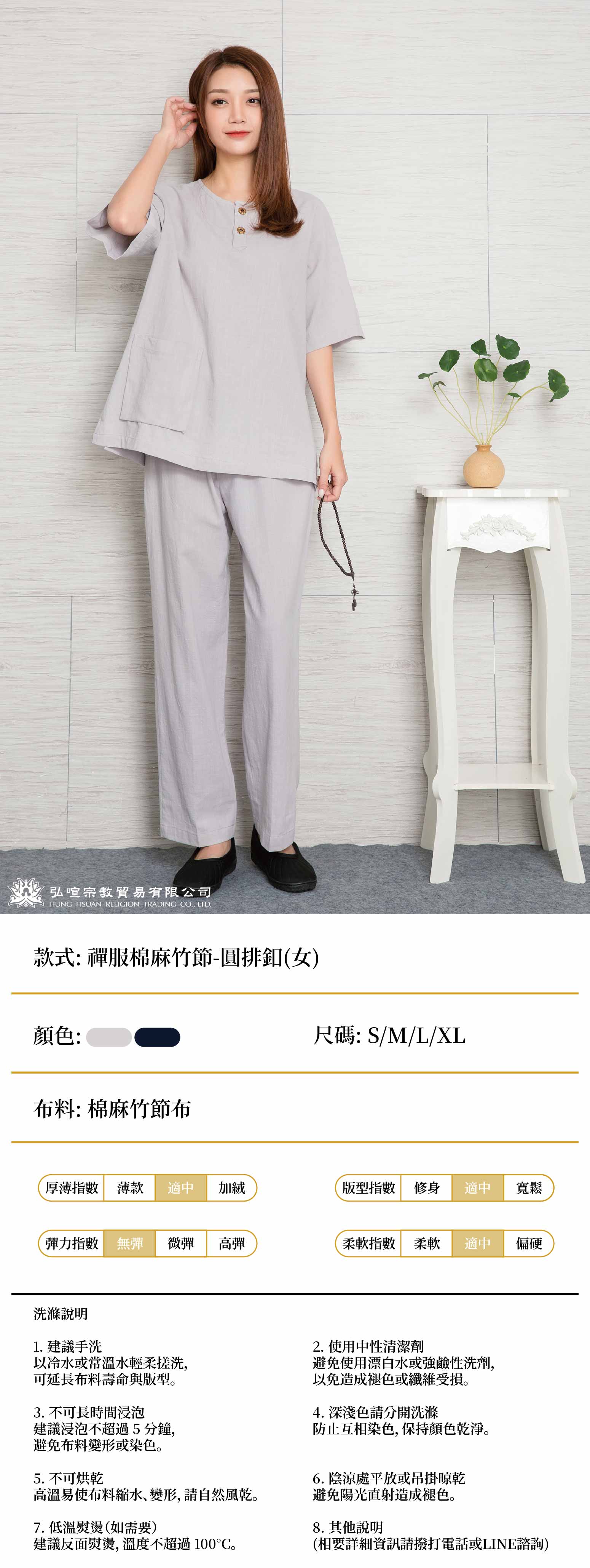 home 首頁 navigate_next 產品專區 navigate_next (H)日常衣服 navigate_next (H-1)禪服 navigate_next 女禪服棉麻竹節-圓排釦