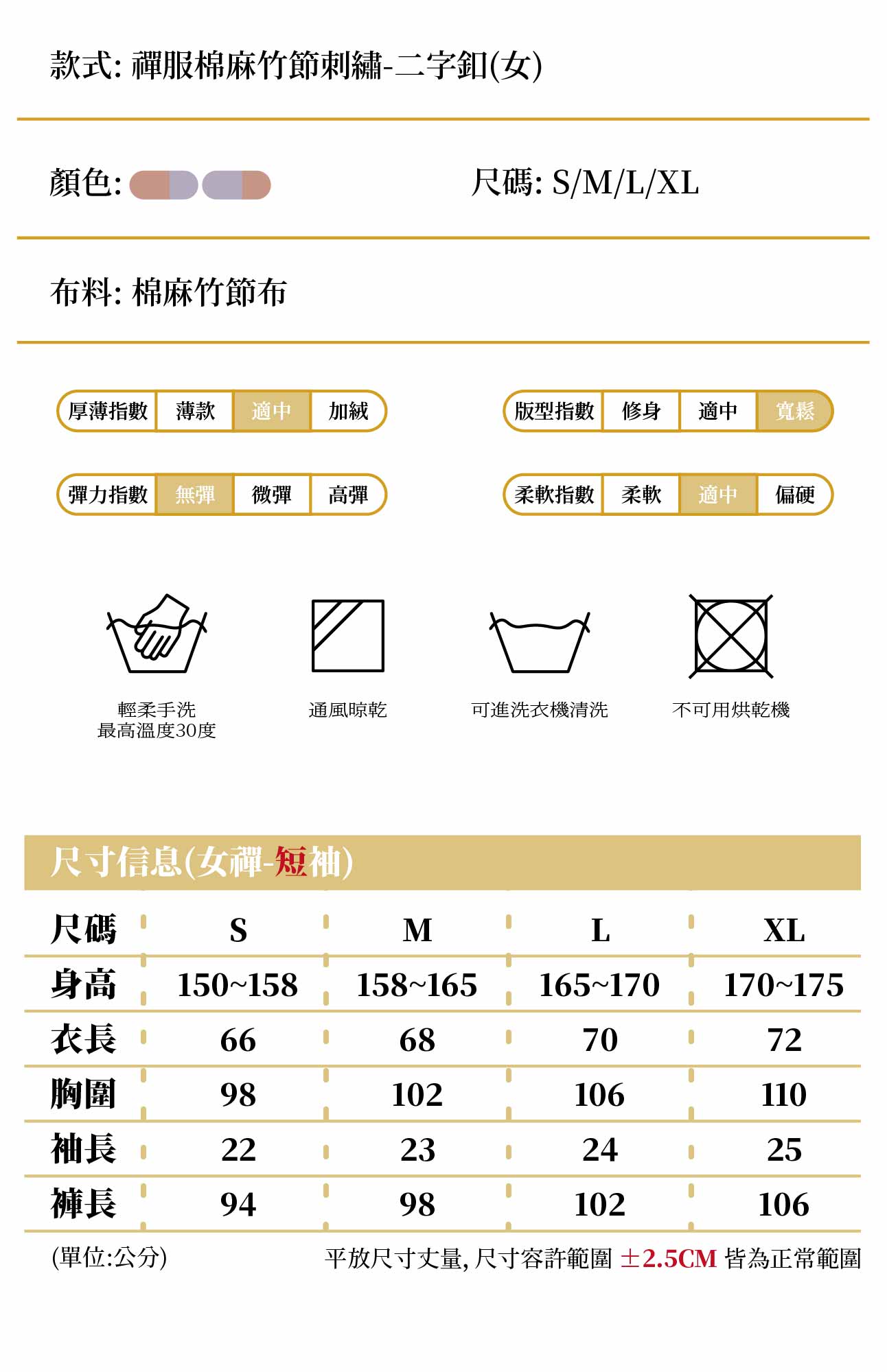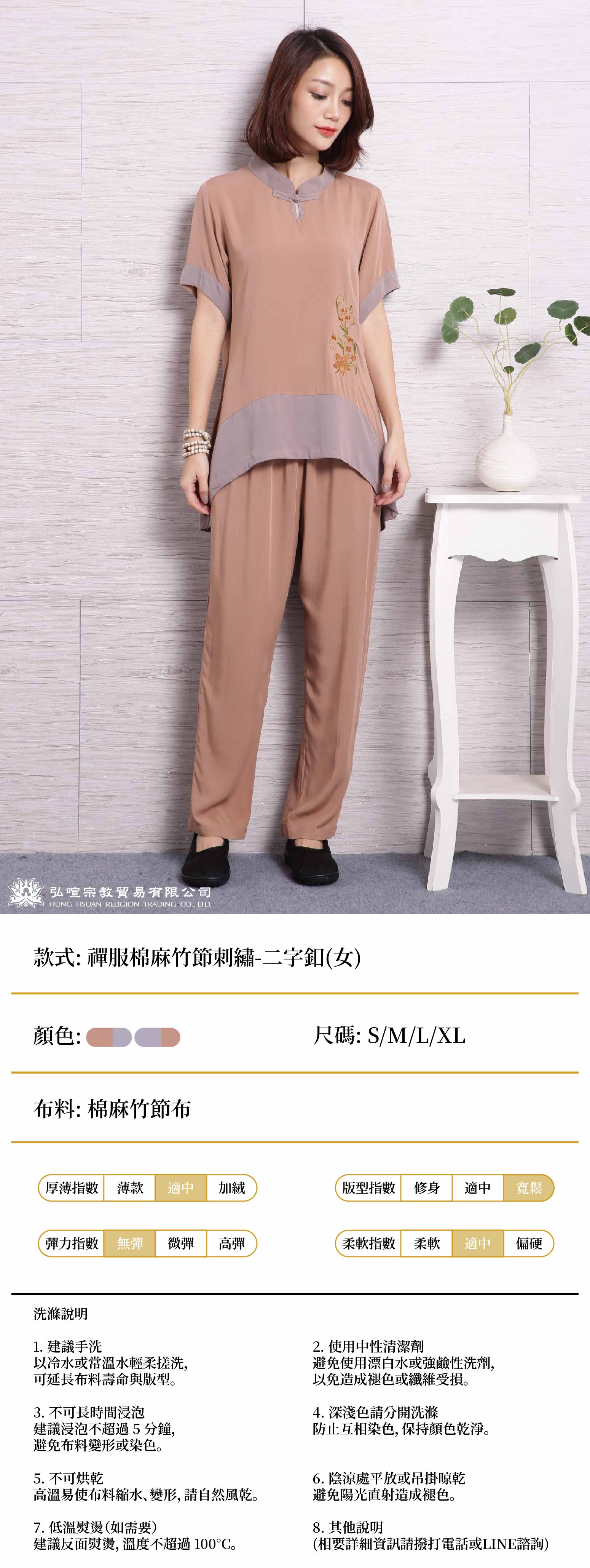home 首頁 navigate_next 產品專區 navigate_next (H)日常衣服 navigate_next (H-1)禪服 navigate_next 女禪服棉麻竹節刺繡-二字釦