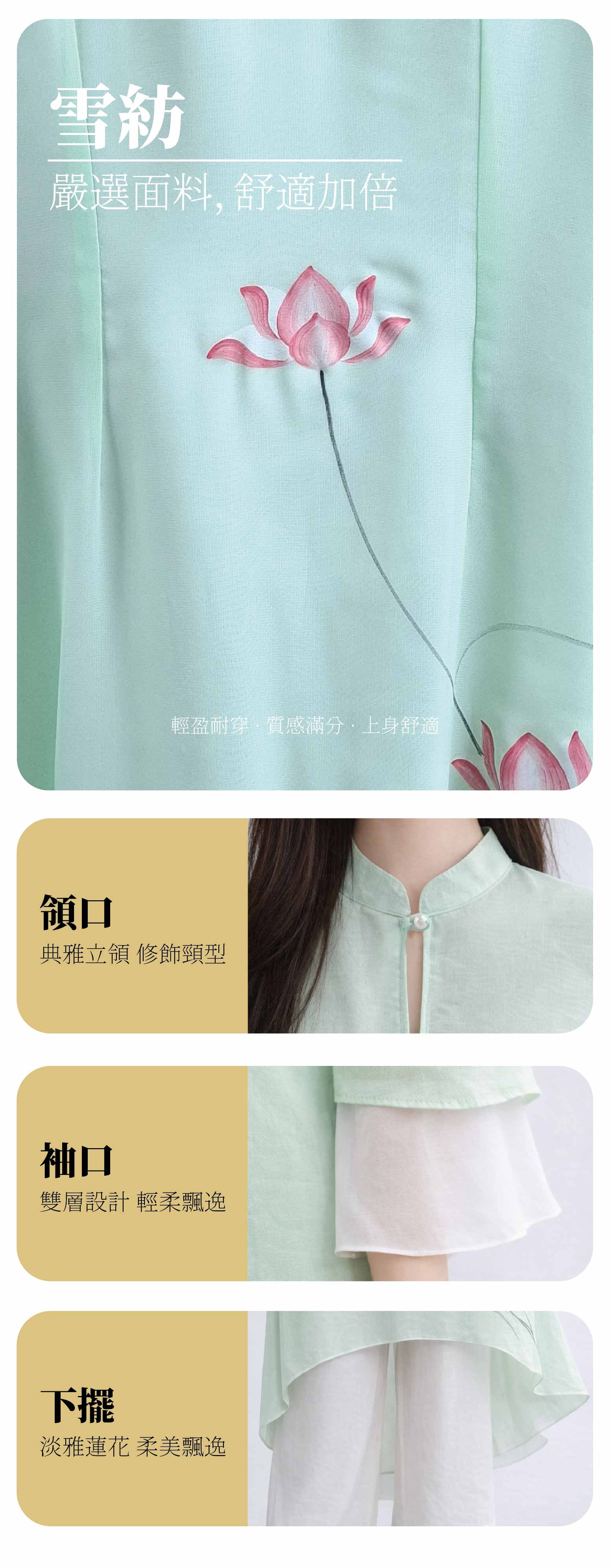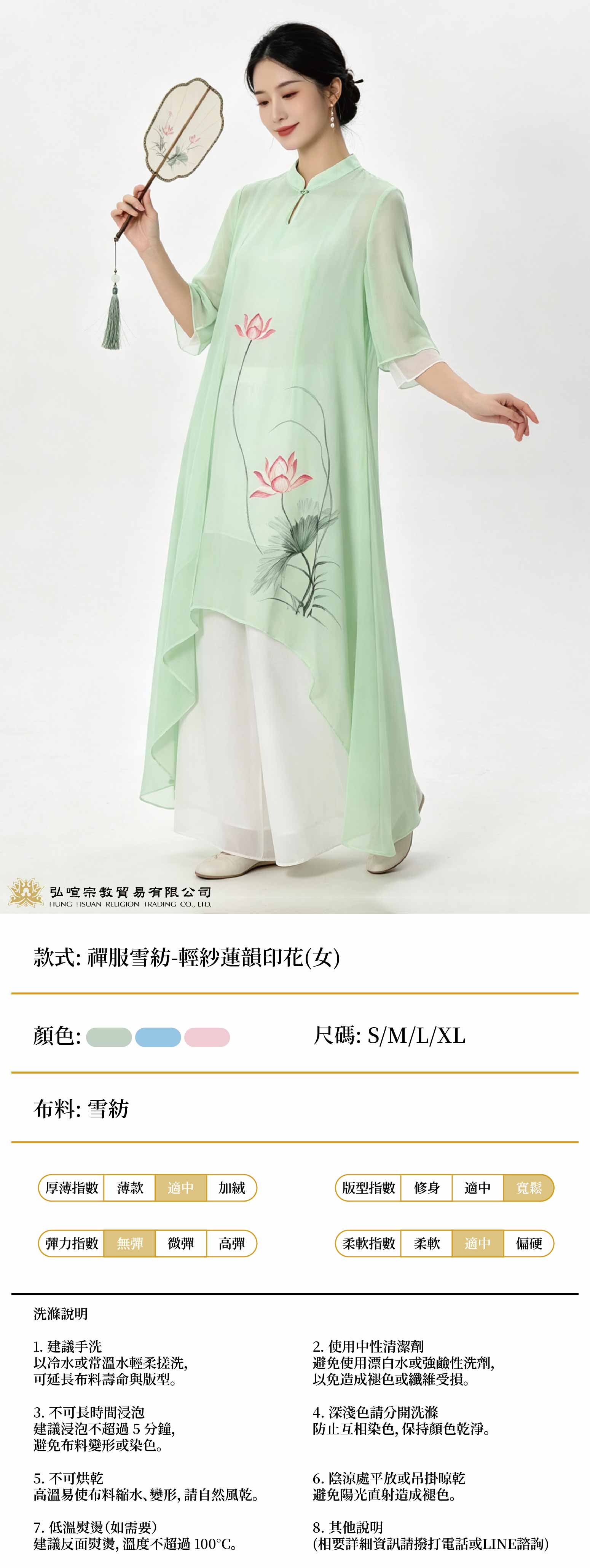 home 首頁 navigate_next 產品專區 navigate_next (H)日常衣服 navigate_next (H-1)禪服 navigate_next 女禪雪紡-輕紗蓮韻印花