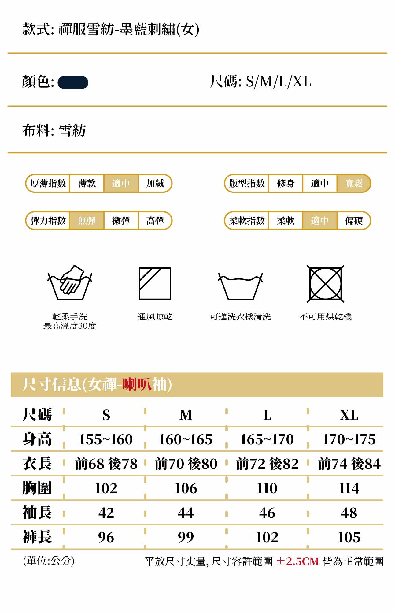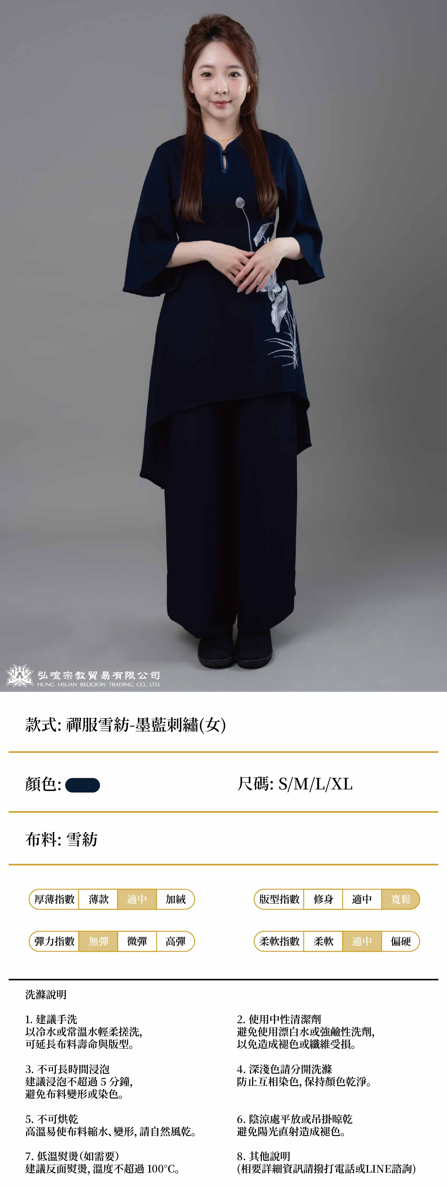 home 首頁 navigate_next 產品專區 navigate_next (H)日常衣服 navigate_next (H-1)禪服 navigate_next 女禪雪紡-墨藍刺繡