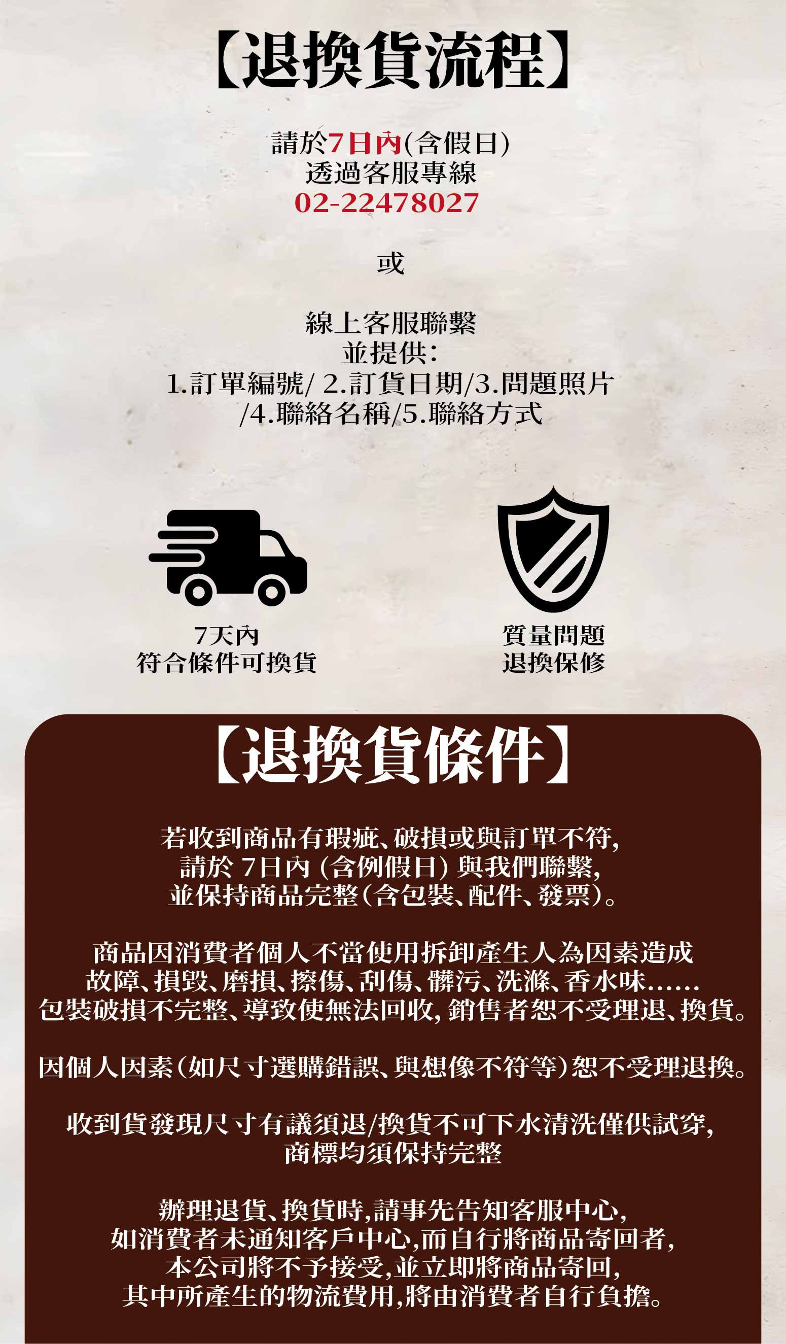為維護您的權益,購買前請詳細閱讀以下退換貨規範: