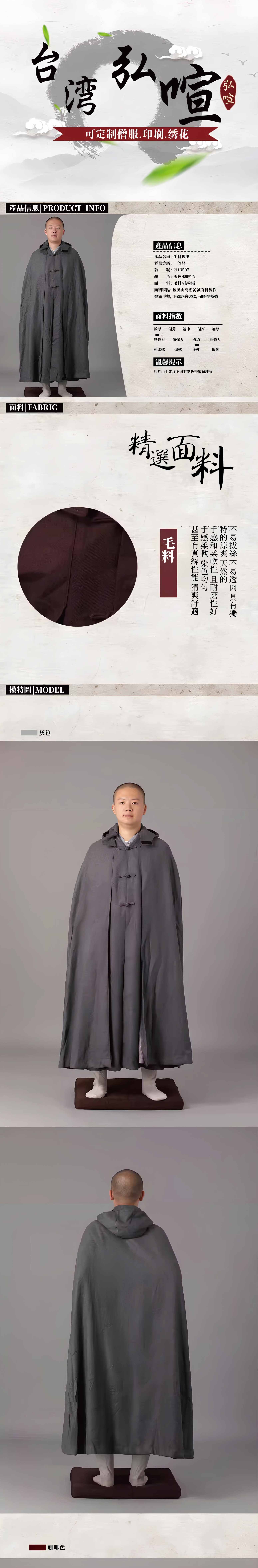 home 首頁 navigate_next 產品專區 navigate_next (E)弘喧僧服 navigate_next (E-10)披風 navigate_next 毛料披風